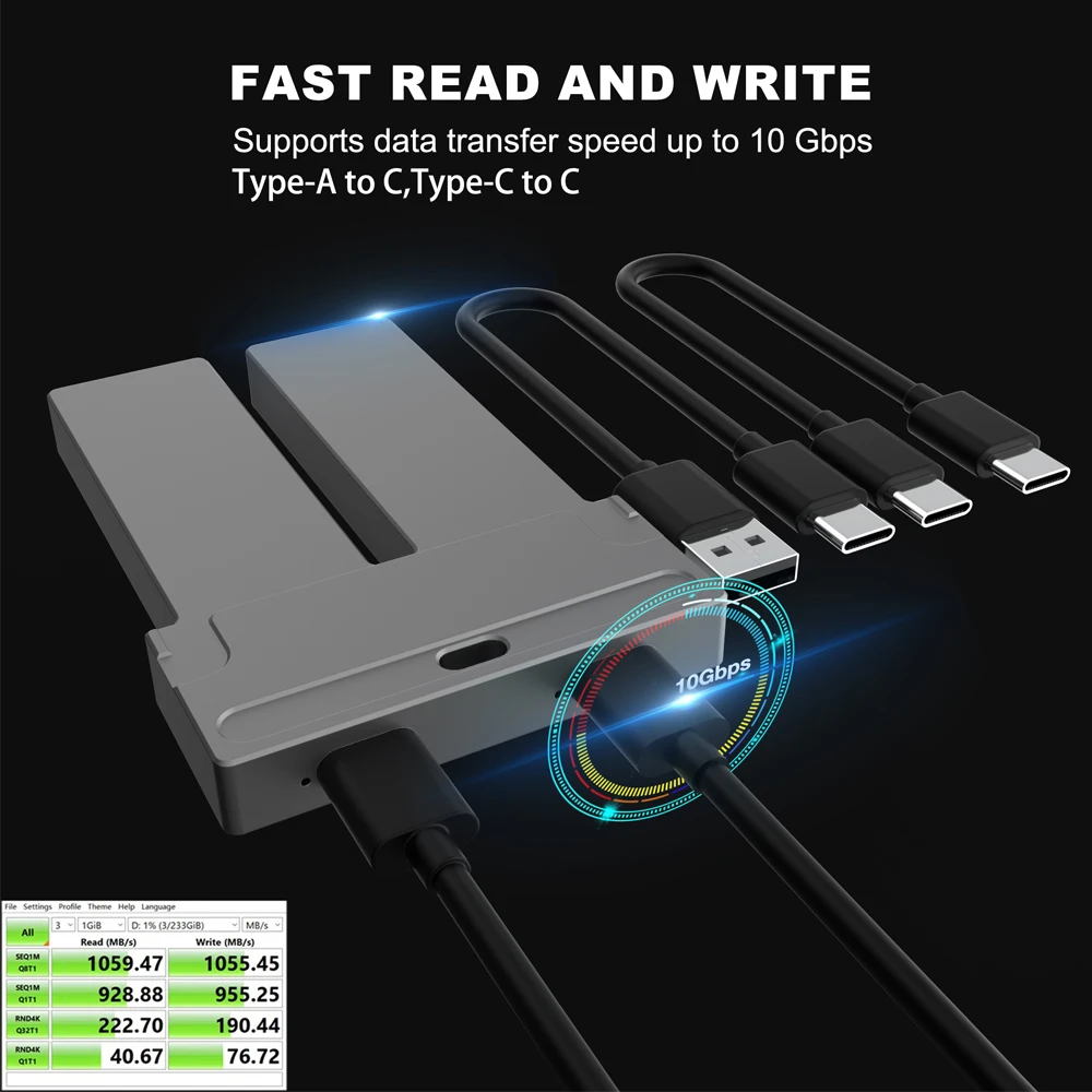 - Equipped with a flexible 30cm USB A to USB C cable with dual outputs (USB C-A and USB C-C), supporting plug-and-play operation with transfer speeds up to 10Gbps, ideal for fast backups and file transfers.