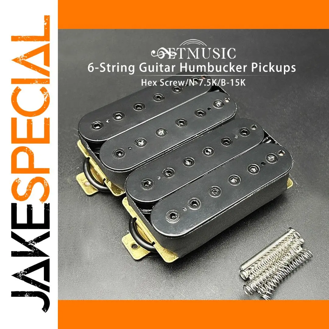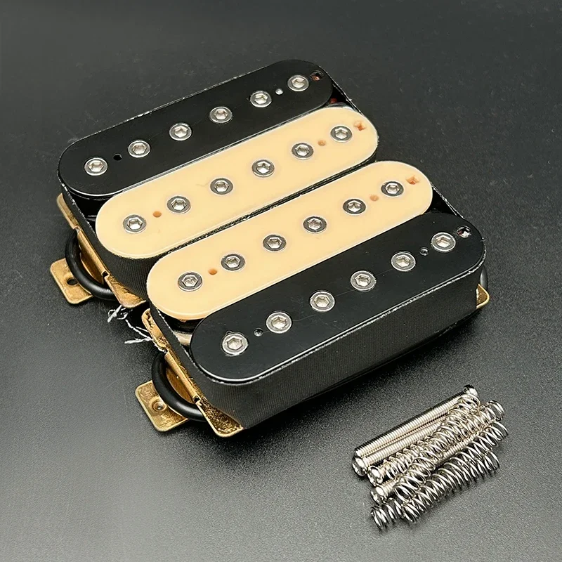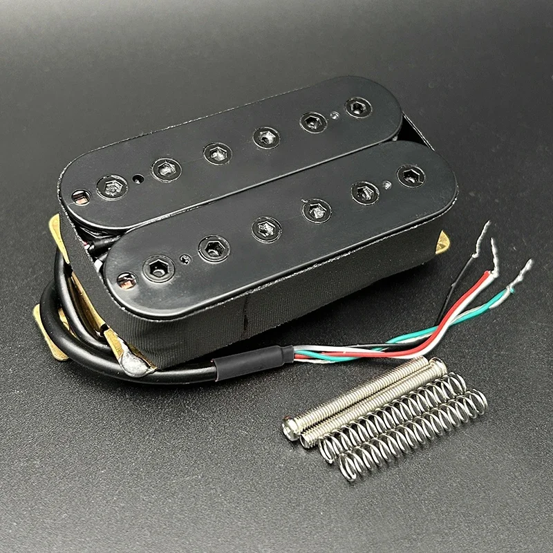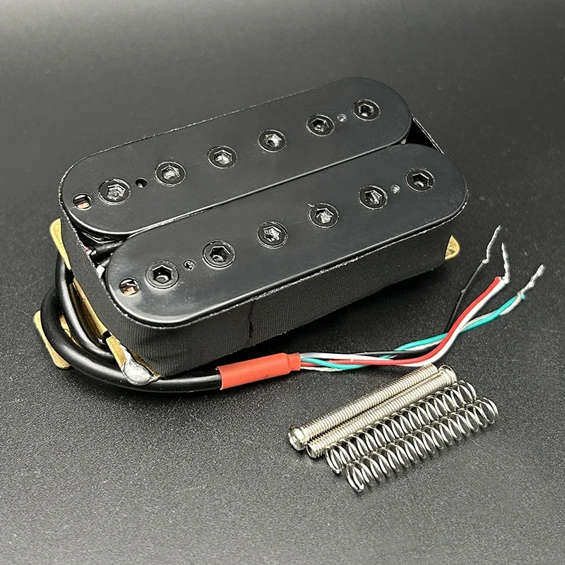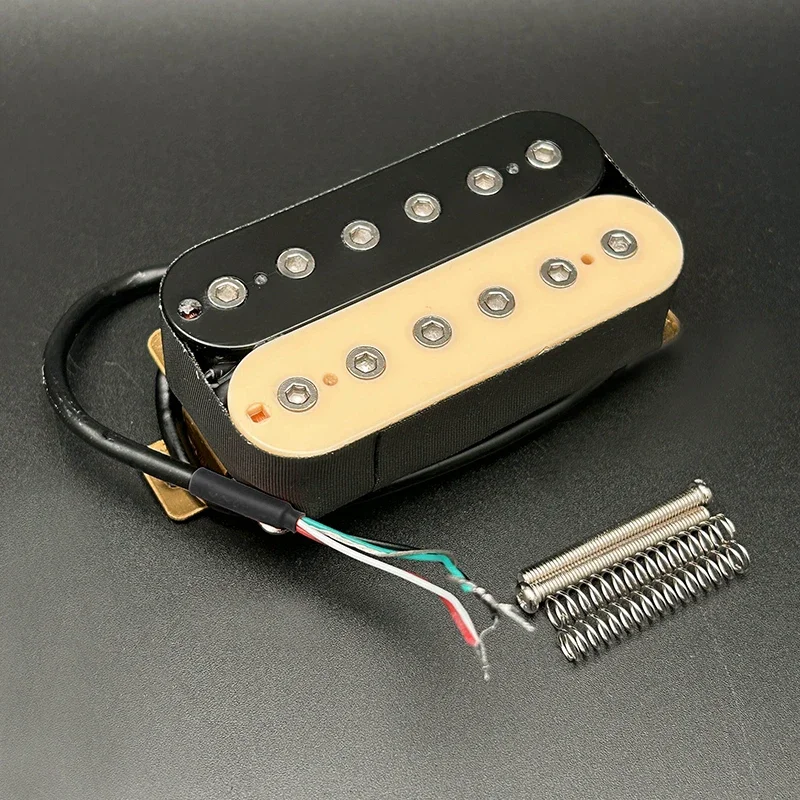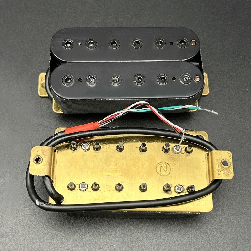Experience versatile tone with this professional guitar humbucker set, featuring a sleek black matte finish and dual-coil design with 12 adjustable hex screws for precise pole piece adjustment. The neck pickup offers 7.5kΩ resistance, while the bridge provides 15kΩ, supporting coil splitting for expanded tonal options. Constructed with durable plastic bobbins and ceramic bar magnets, these pickups include four-conductor cables measuring 340mm for the neck and 300mm for the bridge, enabling flexible wiring configurations. Compatible with various 6-string electric guitar models, the pickups weigh 230g and are available in colors such as black, white, purple, and sky blue with screw or ivory accents.