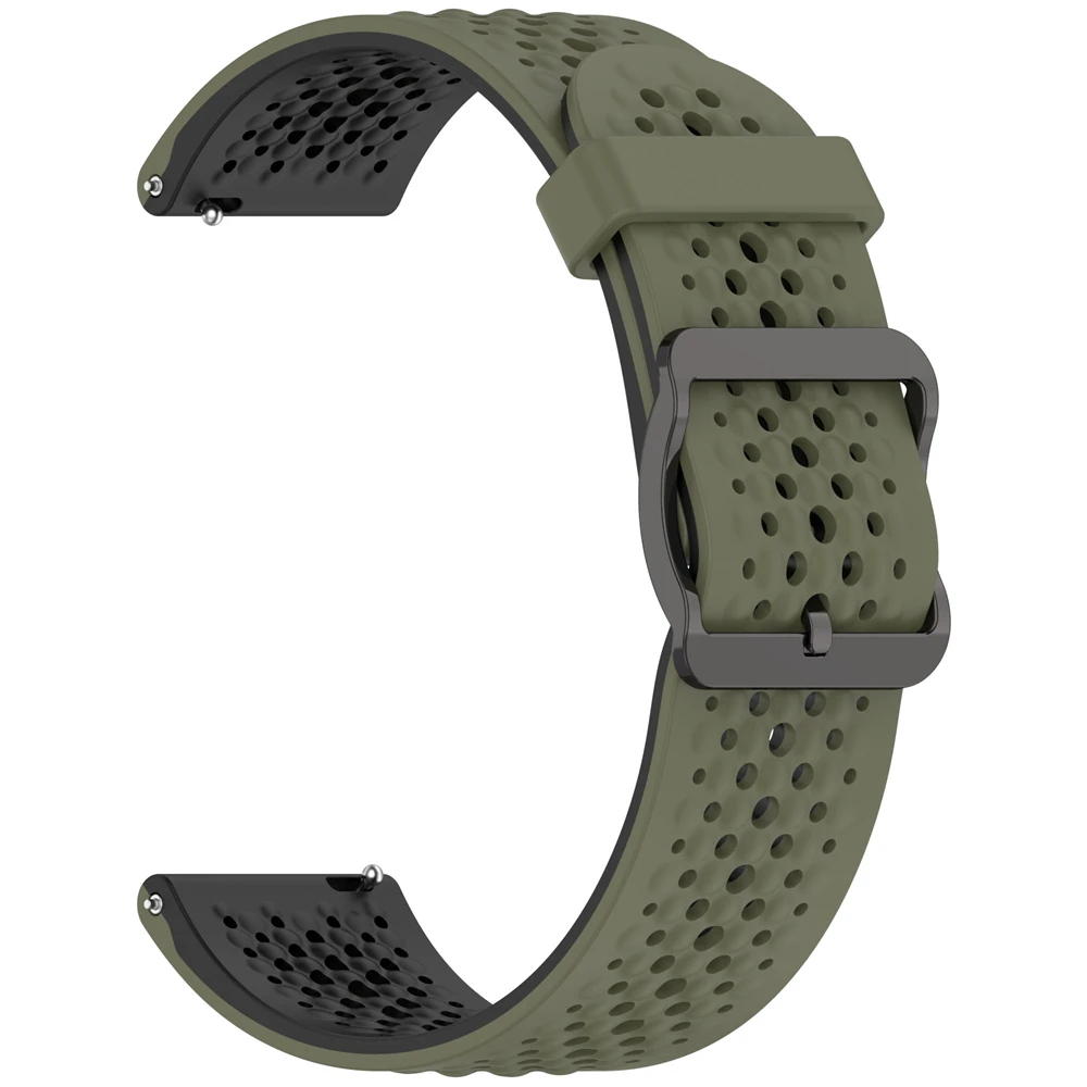 Elevate your smartwatch style with this adjustable dual-color silicone strap available in 20mm and 22mm widths, measuring 129mm plus 85.3mm in length. Crafted from flexible, durable liquid silicone with a sleek matte finish, it features breathable perforations for comfort during active wear. Designed for compatibility with popular models like Galaxy Watch series (3, 4, 5, 6, 7, FE, classic, Pro), Huawei Watch series (GT2, GT3, GT4, Runner, SE, GT2e, Pro), Honor Watch, Amazfit, Garmin, COROS, and Xiaomi watches. Easy to install and remove, this stylish strap offers a perfect blend of functionality, comfort, and modern aesthetic for adult users.