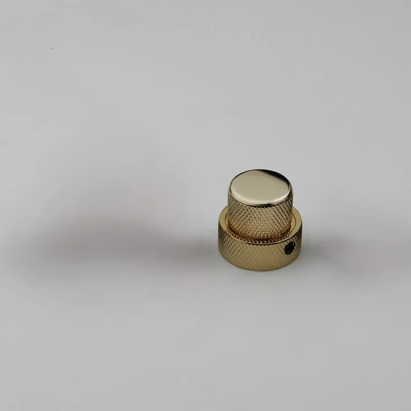 Experience a seamless blend of style and function with this this dual concentric control knob. Its metallic construction offers durability and a premium feel, while its textured diamond-pattern knurled surface ensures a secure grip during adjustments. The smooth, slightly domed top surface captures light elegantly, adding a touch of sophistication to your guitar. Designed in four diverse finishes—brushed gold, shiny chrome, matte black, and bright silver—this knob complements any guitar aesthetic, from modern to vintage. Its compact, cylindrical shape offers easy handling and precise control, enhancing your playing experience. With a weight of around 200 grams, it’s solid yet easy to maneuver, balancing functional performance with aesthetic appeal.