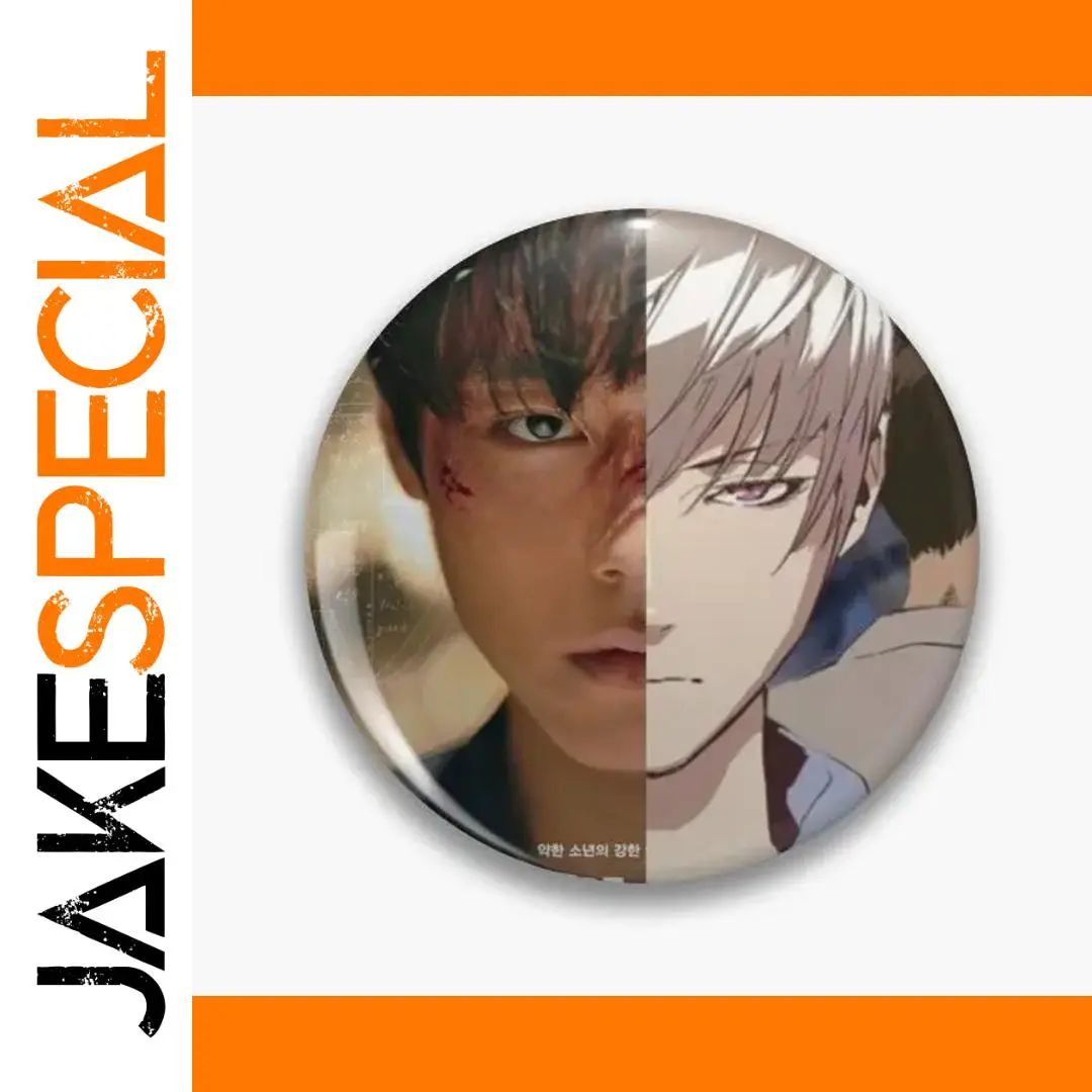 Imagine adding a distinctive touch to your wardrobe with this creatively designed collar badge. Crafted from eco-friendly alloy, it features a glossy, reflective surface that instantly catches light. The design divides into two contrasting halves: one vividly realistic with a close-up of a young man's intense face, complete with natural skin tones and visible scars, and the other a stylized anime-inspired illustration with soft, subdued colors and gentle expressions. This striking combination of realism and stylized art makes it perfect for expressing your unique style. Whether worn on clothing, hats, or accessories, this badge elevates any outfit with its dynamic visual appeal and thoughtful craftsmanship, making it an ideal gift for artistic and fashion-forward individuals alike.