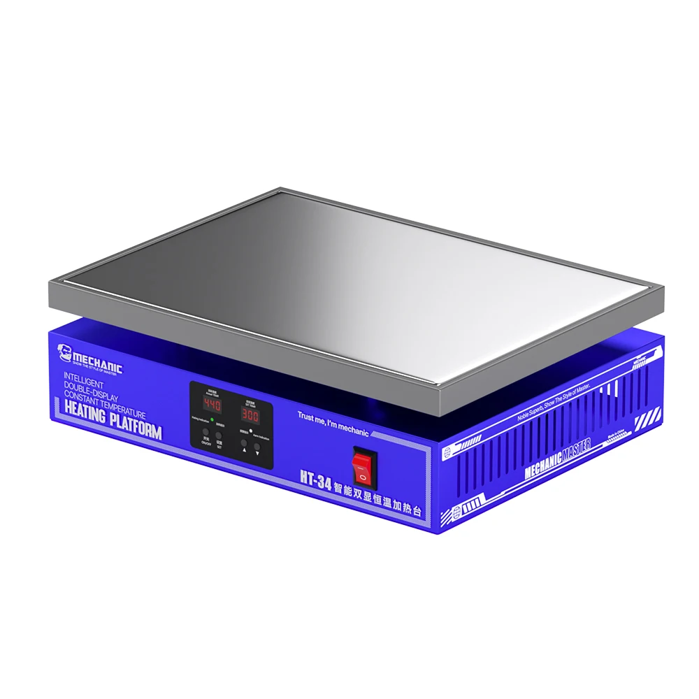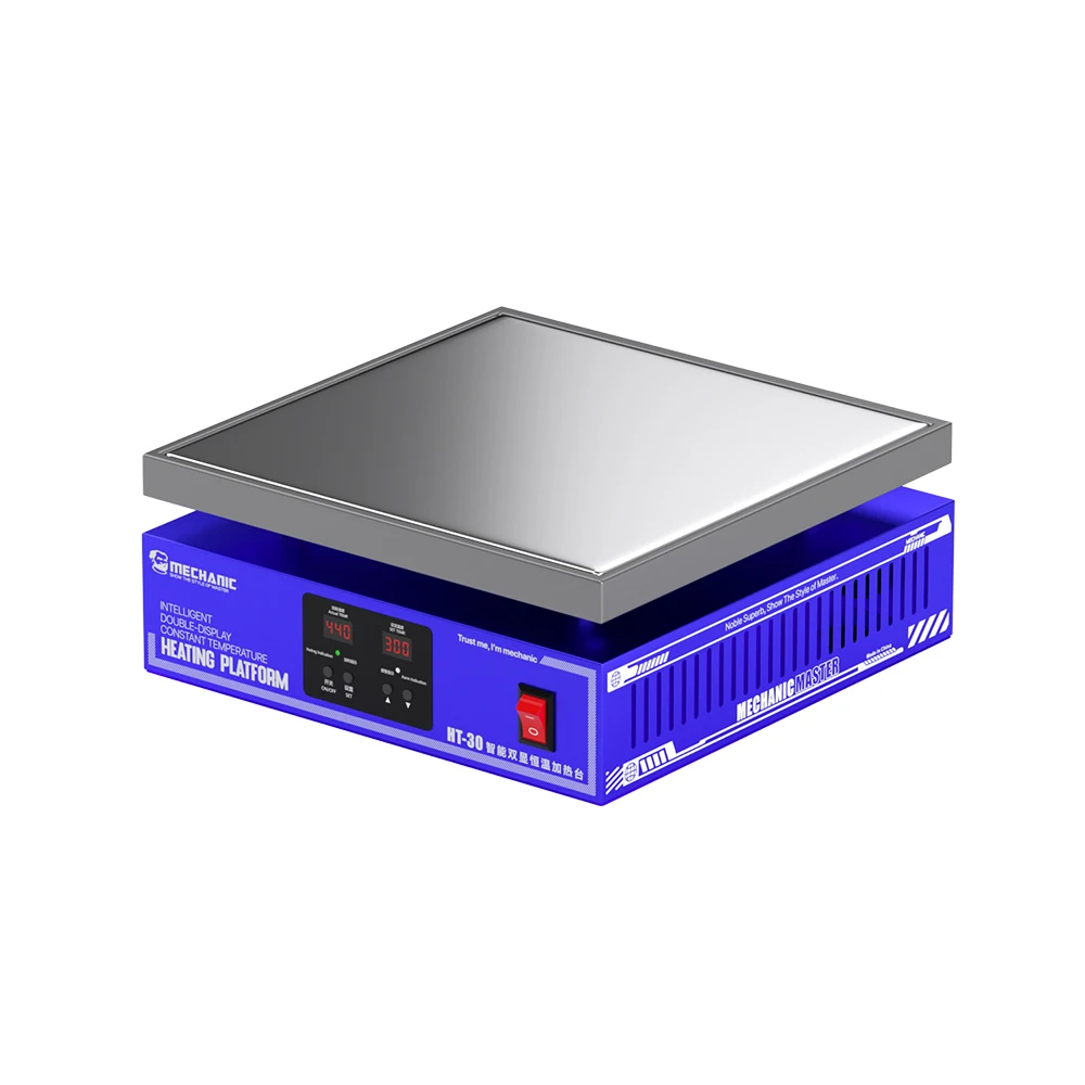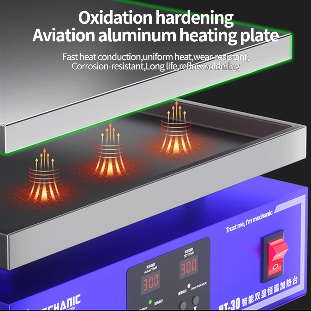 Imagine easily managing precise heating tasks with this innovative dual-display constant temperature heating station. Crafted for professionals and enthusiasts alike, it offers superior control over temperature settings up to 300°C. Its sleek, modern design features a large, shiny oxidation-hardened aviation aluminum platform, providing excellent heat conduction and durability. The vibrant blue front panel with dual digital displays ensures clarity and effortless adjustment, while safety is prioritized with a sturdy, all-in-one anti-scald casing. Whether you're removing mobile phone screens, preheating PCBs, or welding chips, this station’s uniform heating and reliable operation help you achieve high-quality results. Compact yet powerful, it combines safety, efficiency, and style to elevate your repair process effortlessly.