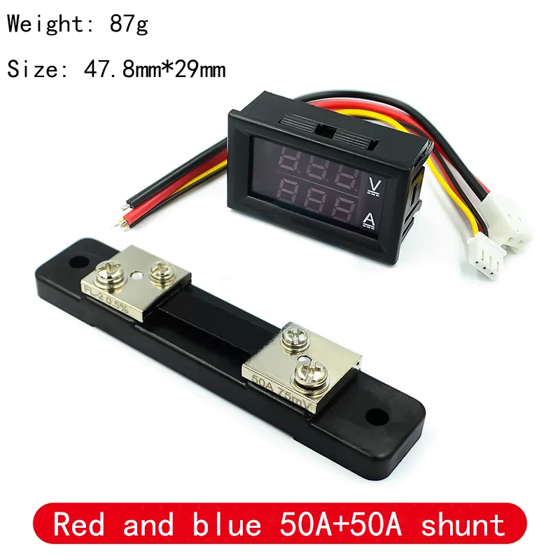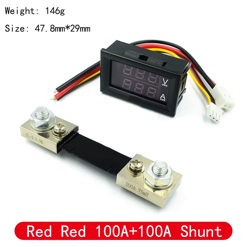 The DC0-100V1A 10A 50A 100A dual display digital ammeter and voltmeter is an essential tool for precise voltage and current monitoring. With its vivid 0.28-inch LED digital tube, it provides clear readings for voltage ranging from 0.0V to 100V and current from 0-999mA up to 100A. The sleek, compact design allows it to be easily mounted in various setups. The inclusion of three color-coded wires facilitates hassle-free connections, while the robust metallic shunt ensures reliability. Enjoy convenient operation within a power supply range of DC 4-30V, all designed to meet your measurement needs accurately and efficiently.