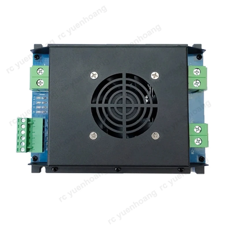 - Equipped with vibrant green terminal blocks along the sides for easy wiring access and secure connections for motor and power supply inputs.