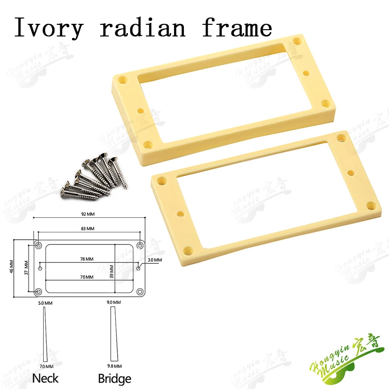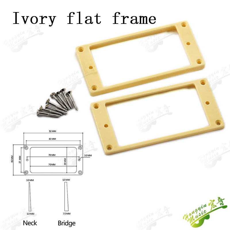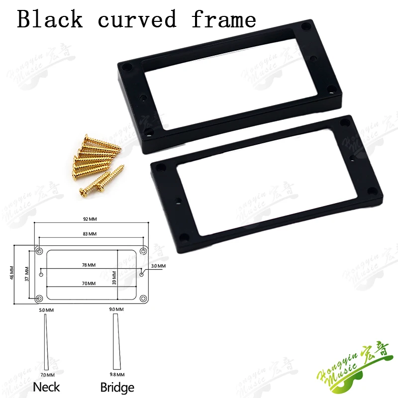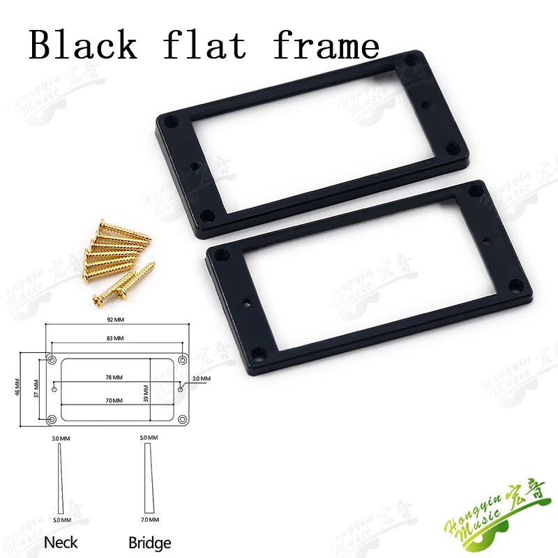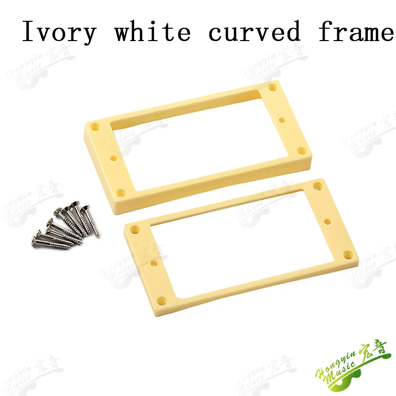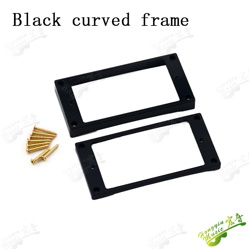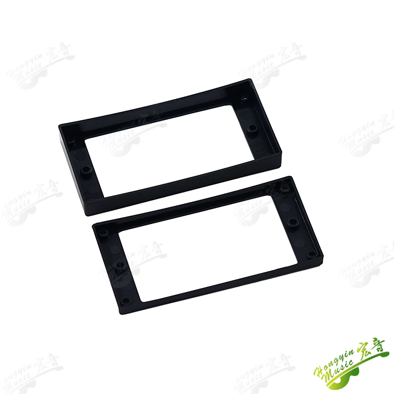 Imagine perfecting your guitar setup with this set of dual pickup frames, crafted to enhance both aesthetics and functionality. These frames are ideal for restoring or customizing your instrument, blending sleek design with durable materials. The lightweight plastic construction ensures a seamless fit, providing stability and ease of installation. Available in four sophisticated options—black curved, black flat, ivory white curved, and ivory white flat—you can match your guitar's look with ease. Each frame features a smooth, polished surface, emphasizing craftsmanship and quality. Designed for nearly universal double coil pickups, these frames are built to withstand the rigors of regular use, ensuring long-lasting performance while elevating your guitar’s style.