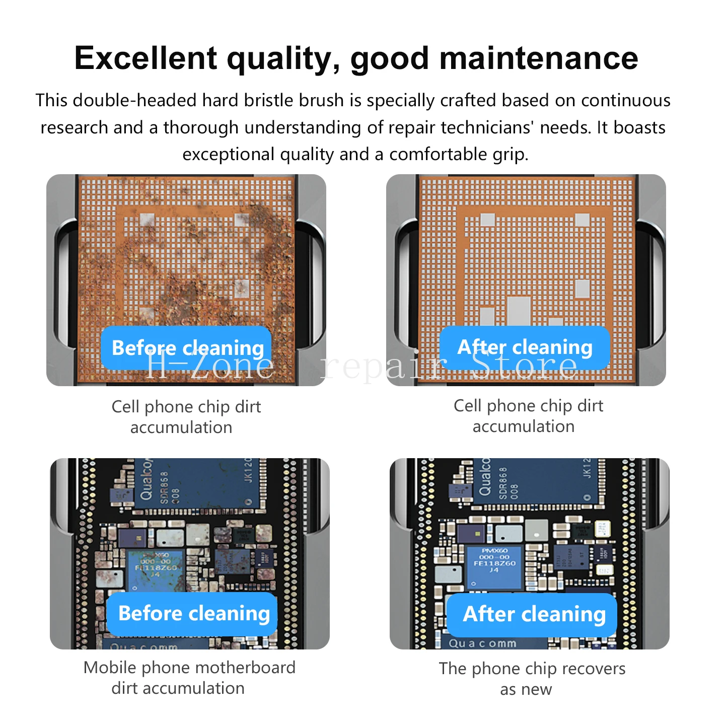 - Synthetic bristles are soft, straight, and uniform, perfect for cleaning motherboard solder pads and IC chips gently yet effectively.