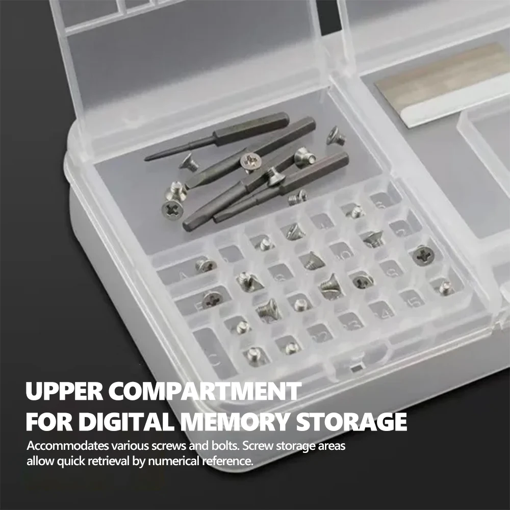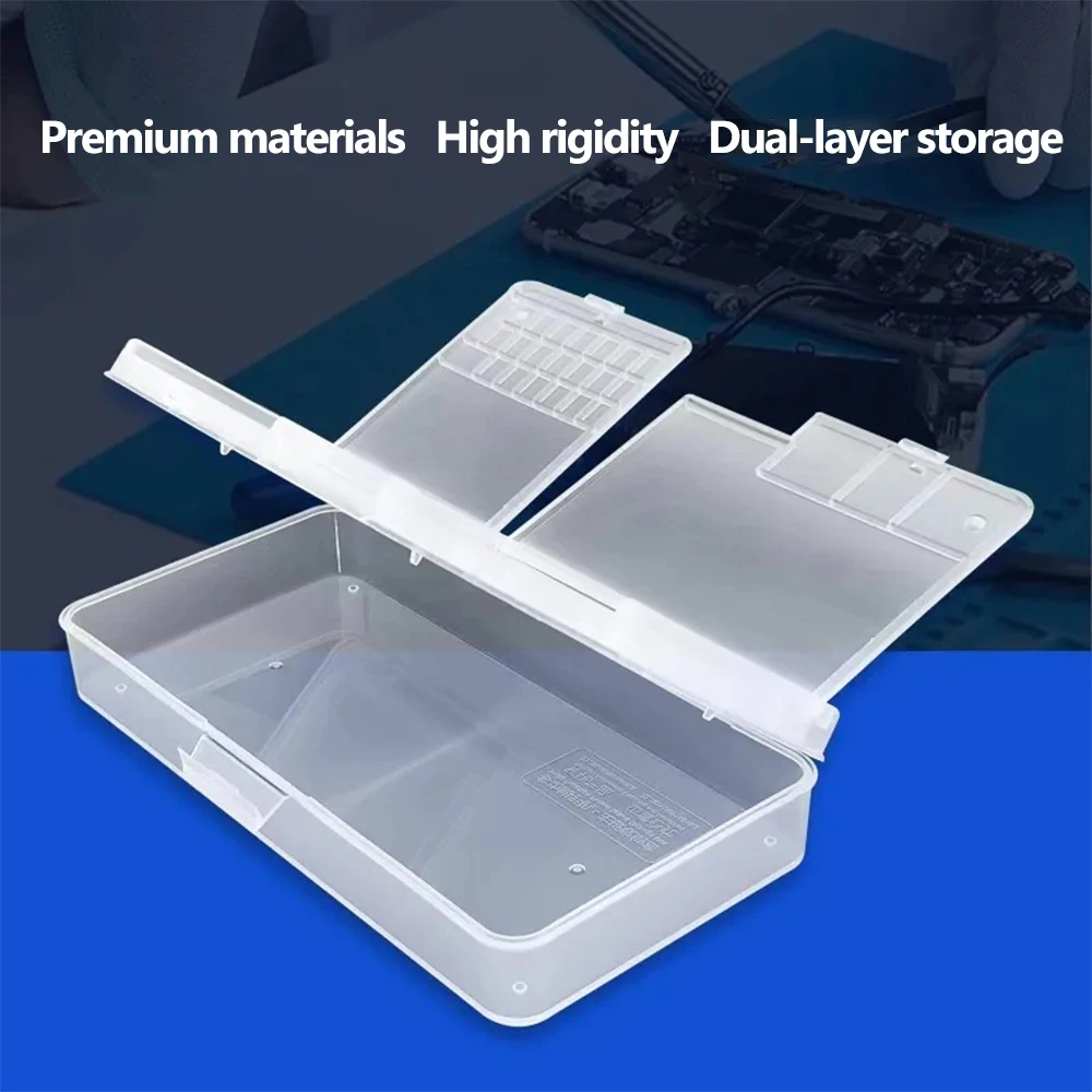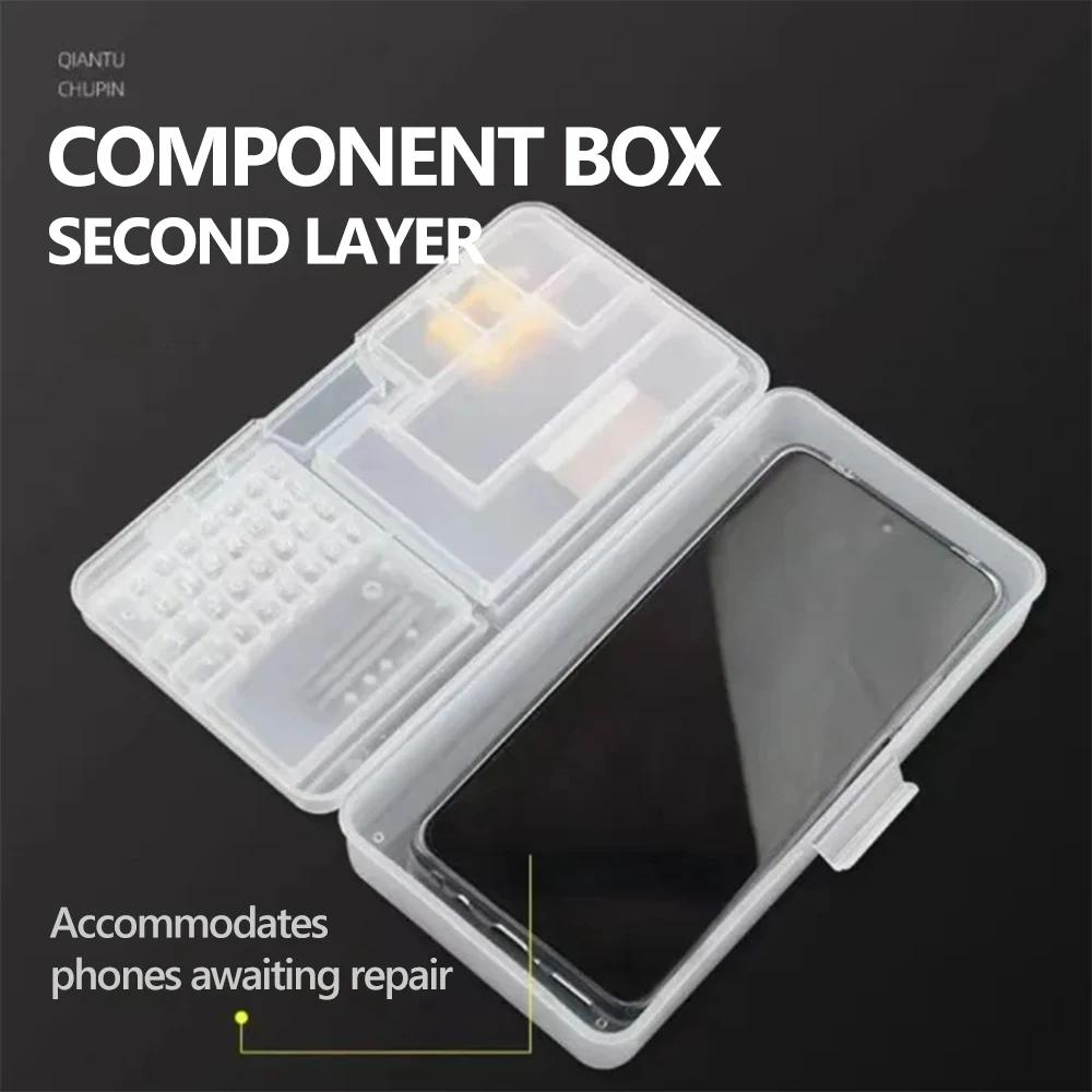 Envision yourself using this perfectly organized storage system, keeping your tools and parts neatly arranged and accessible at all times. Whether you're a professional technician or a dedicated DIY repair enthusiast, this durable, transparent box ensures your workspace stays tidy and efficient. Its intelligent design and high-quality materials mean years of reliable use, giving you peace of mind. Say goodbye to hunting for screws or sorting through clutter—this storage box supports your workflow seamlessly. Invest in this essential repair solution today and experience the convenience of an organized, professional-grade workspace.