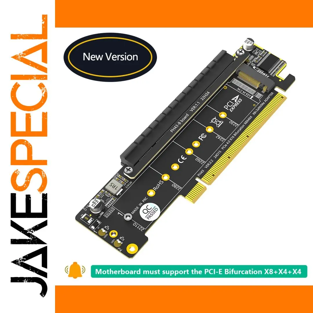 - The device is designed for motherboards supporting PCIe 4.0 or 3.0 x16 slots with bifurcation capabilities (set to x8x4x4), ensuring full support and high-speed data throughput.
