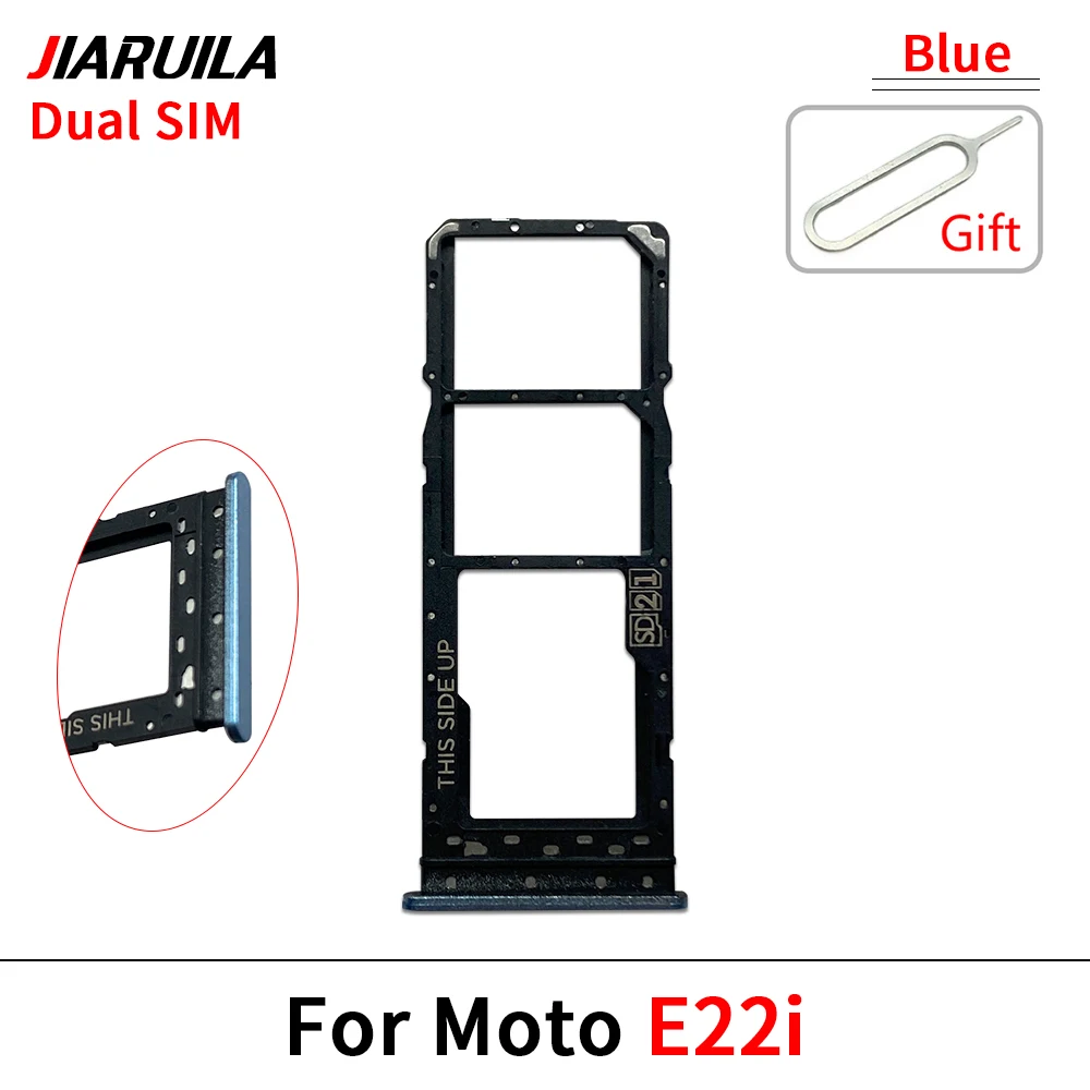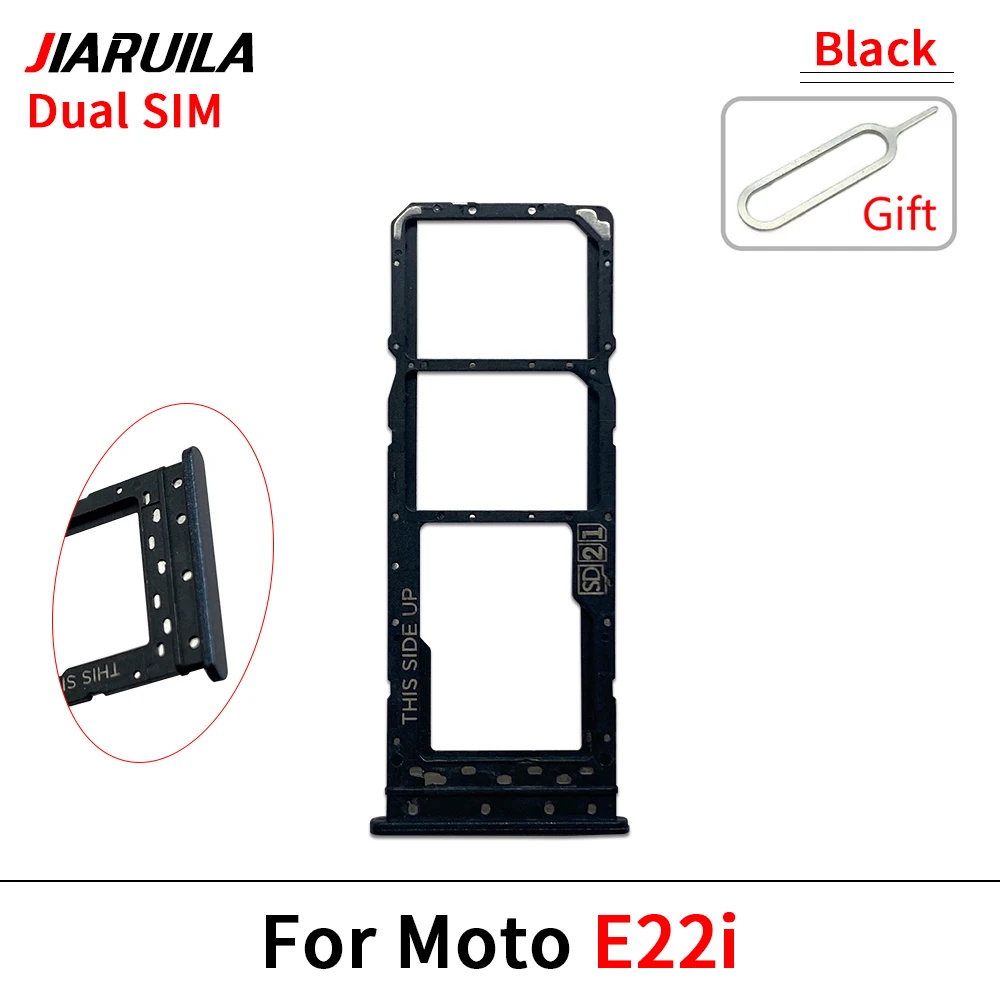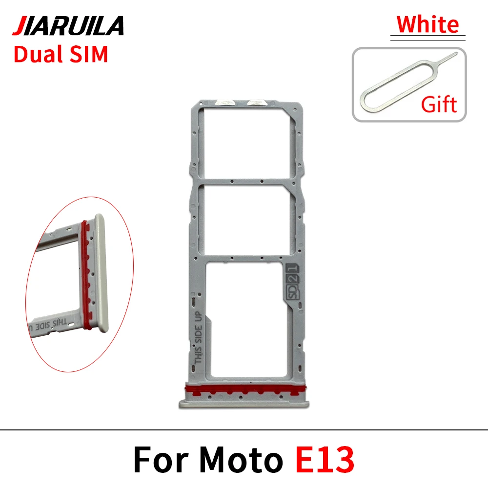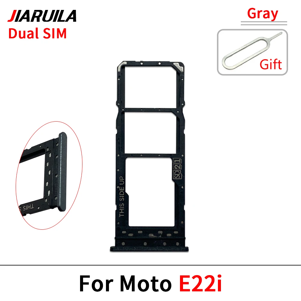 Imagine effortlessly replacing or upgrading your Moto device's SIM card tray with this reliable dual micro SIM card tray holder and SD card reader. Designed specifically for models like Moto E13, E22, and E22i, this part ensures your device functions smoothly with easy installation and secure fit. Whether you're expanding your device's storage with an SD card or managing multiple SIM cards, this tray holder is the perfect solution. Made with durable materials, it maintains device integrity while offering excellent performance. Rest assured, this component is an authentic replacement ready to restore your device's connectivity and storage capabilities. Feel confident knowing this part is tailored for your Moto model.