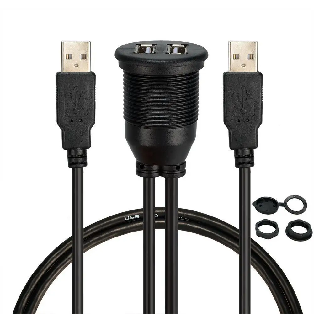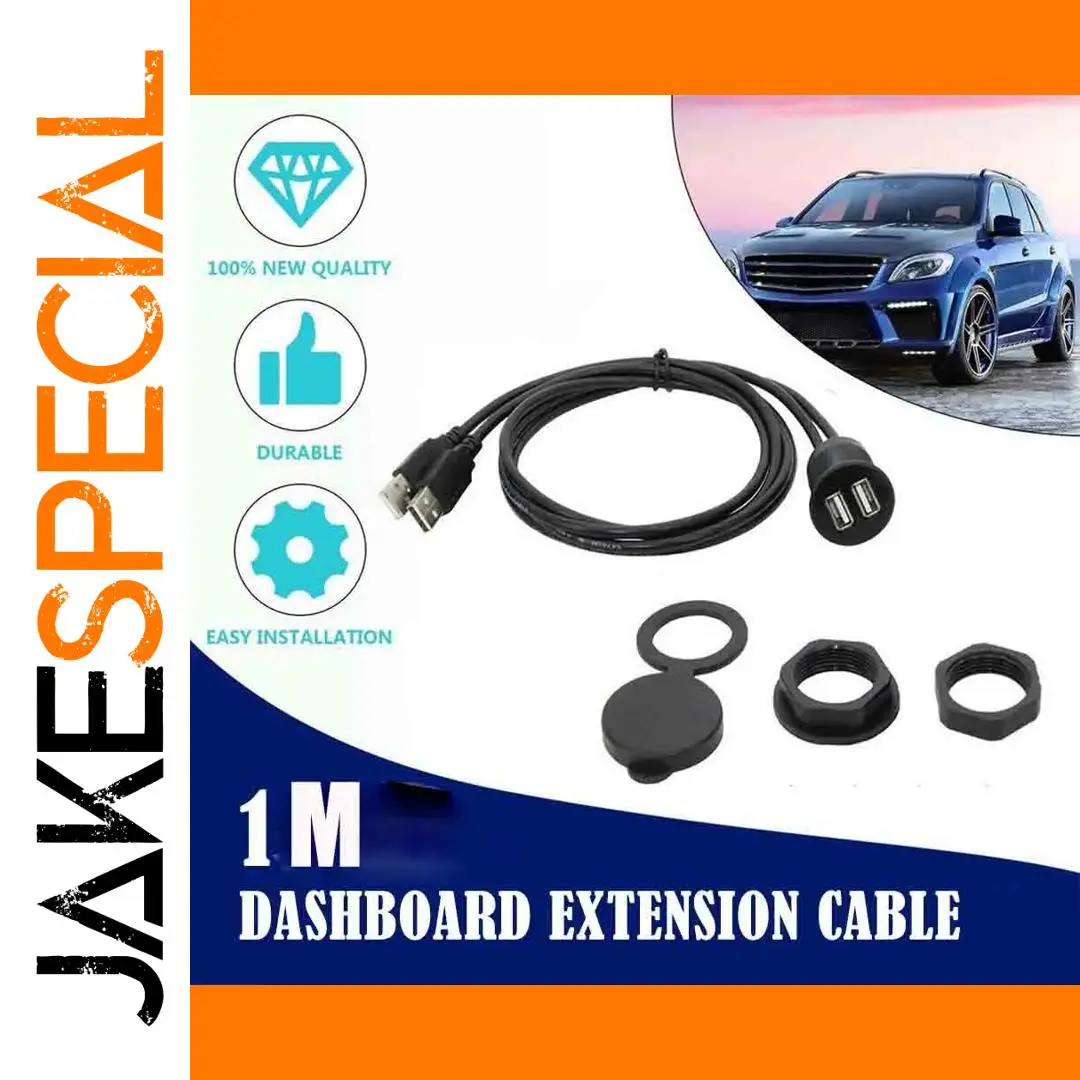 Experience seamless connectivity with this sleek, black dual-port USB 3.0 extension cable, designed for automotive, marine, and motorcycle dashboards. Its modern minimalist style includes a flexible, durable cable with a matte finish, resisting wear and environmental elements. The waterproof female-to-male connectors ensure a secure connection, even in wet conditions, while the compact, square-shaped panel mount with a 29mm x 26mm hole allows flush installation for a clean look. Ideal for extending USB connections for vehicle dashboards, this 1-meter (3-foot) cable supports high-speed data transfer, backward compatible with USB 2.0 and 1.1 devices. Its sturdy design features a buckle for added stability, making it the perfect heavy-duty solution for demanding environments.