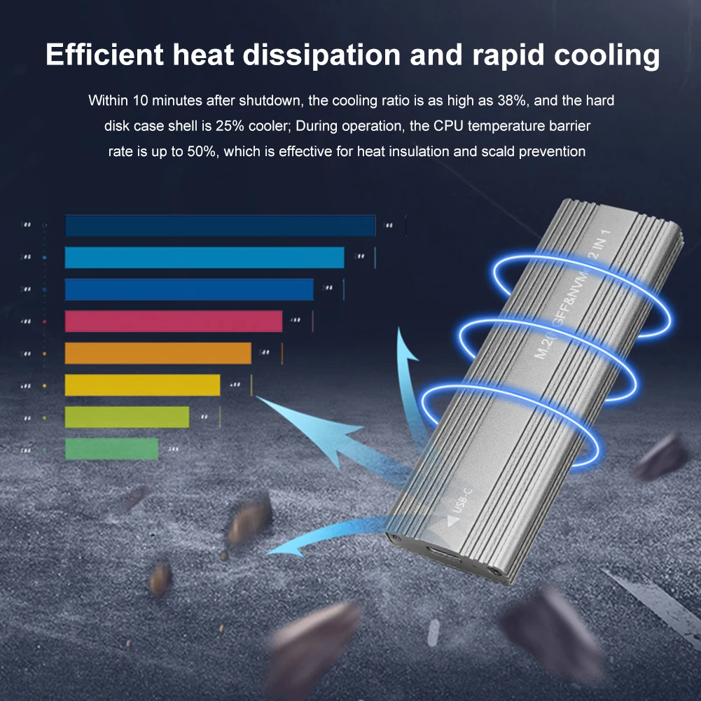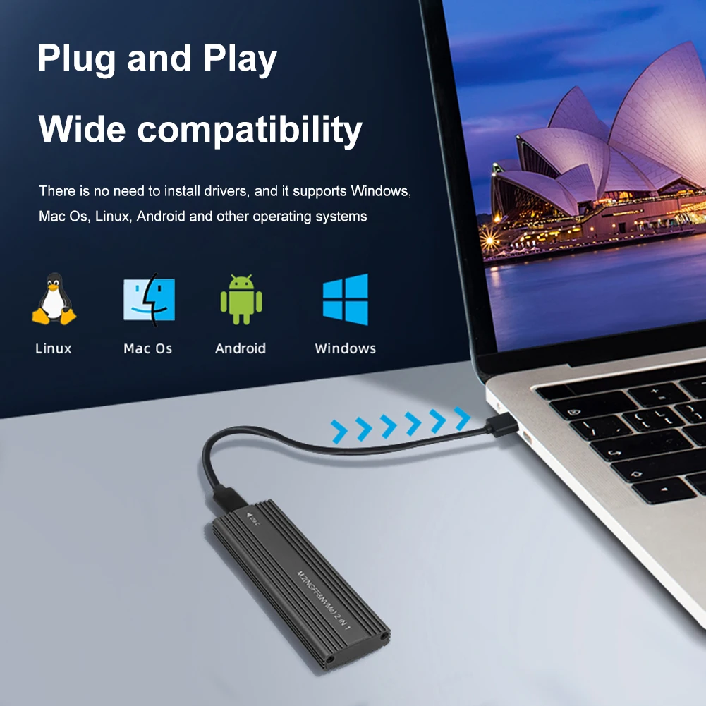 Imagine having all your files, games, and archives at lightning-fast speeds, right at your fingertips. This dual protocol M.2 SSD enclosure makes this possible, providing you with reliable, stylish, and portable storage that’s ready to go anytime you need it. Whether you’re backing up important data or expanding your system’s storage, its sleek aluminum shell and cutting-edge technology are designed to meet your needs. Don’t wait—upgrade your storage setup today and experience the difference quality makes. With this enclosure, dependable performance is just a click away.