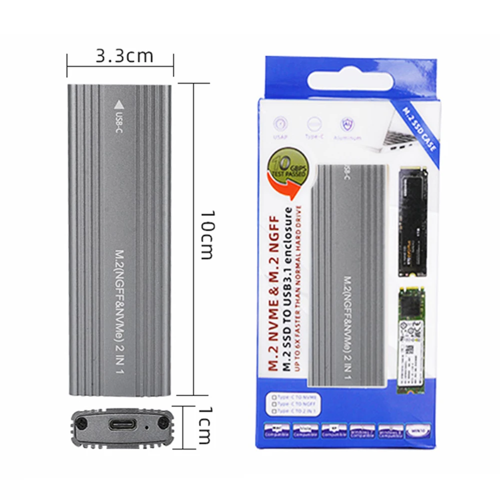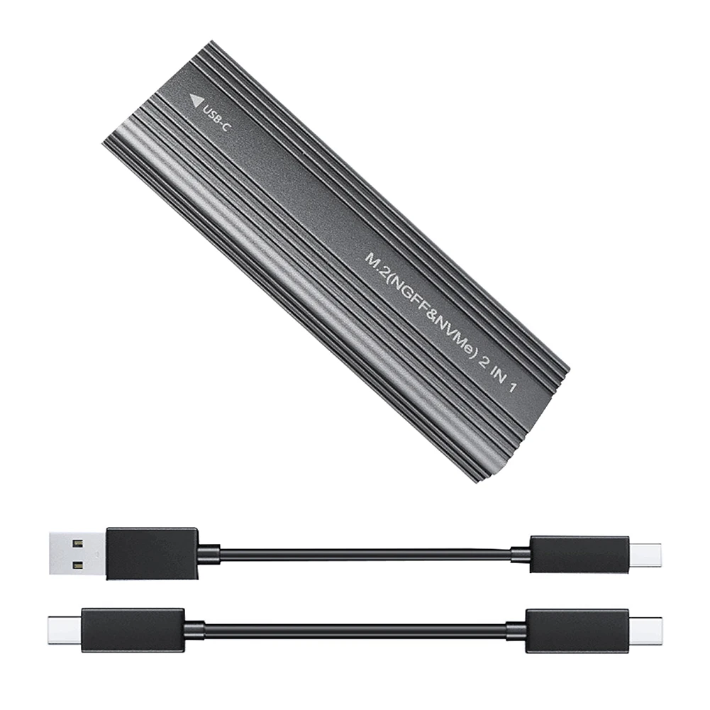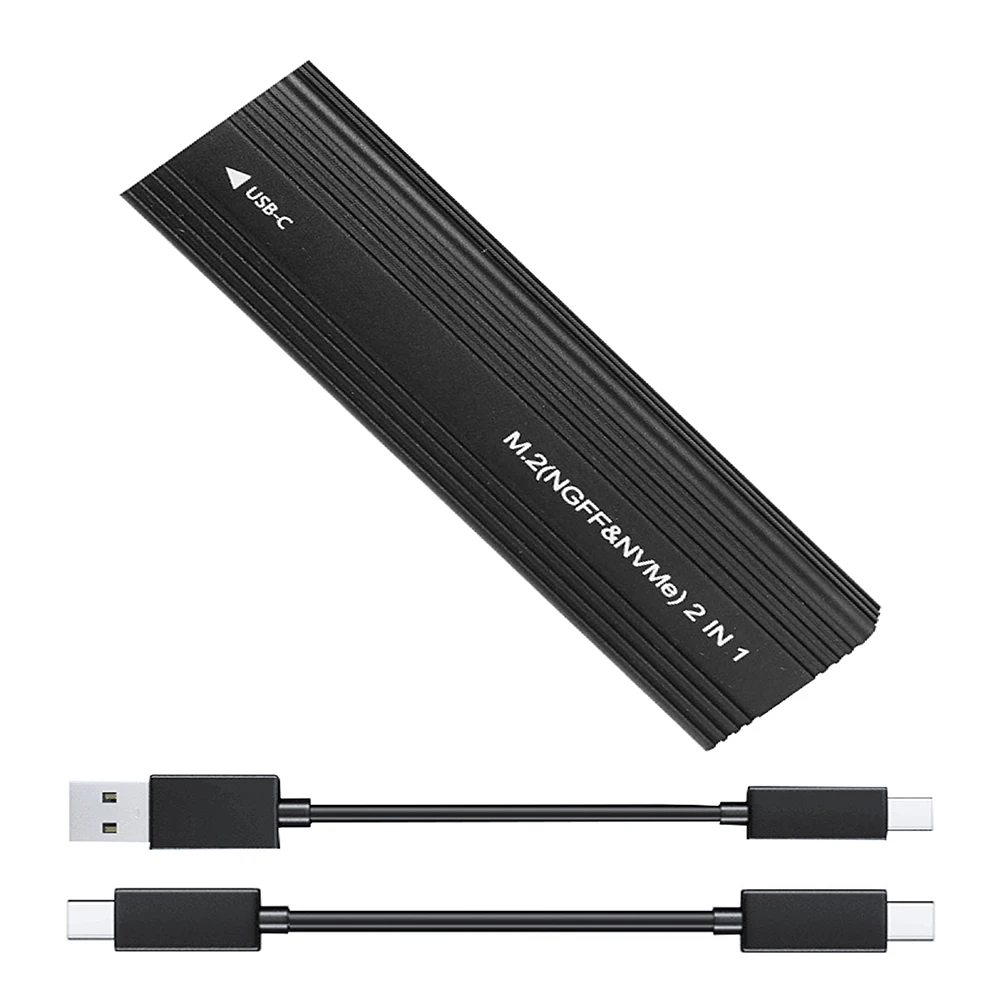 Experience the perfect blend of style and performance with this dual protocol M.2 SSD enclosure. Crafted from durable aluminum alloy with a textured matte finish, it offers excellent heat dissipation and an elegant, minimalist look. Its rectangular design ensures easy portability and sleek aesthetics, ideal for tech enthusiasts who demand high performance. Supporting up to 2TB SSDs, it features USB 3.1 Type-C connectivity, boasting transfer speeds of up to 10Gbps for NVMe and 6Gbps for SATA drives. The enclosure includes dual cables—Type-C to Type-C and Type-C to Type-A—for versatile setup options. Designed for compatibility with various SSD sizes and key interfaces, this enclosure guarantees reliable, high-speed storage expansion for your laptop or PC.