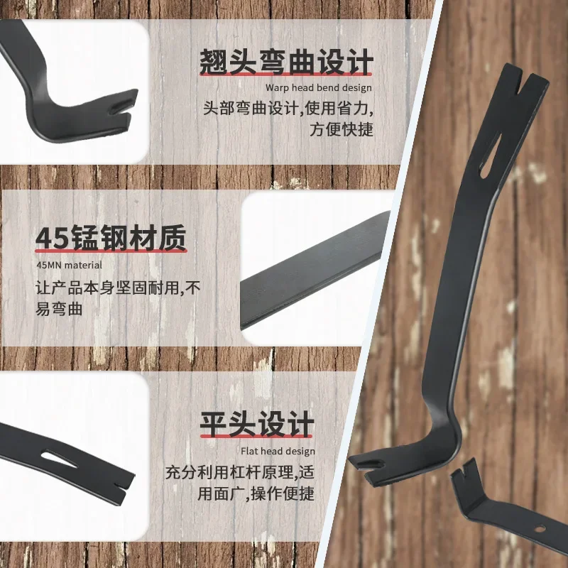 Discover the Dual-Purpose Nail Puller, expertly crafted from high-quality carbon steel for exceptional durability and longevity. Available in compact sizes of 7″, 9″, 15″, and a 7.5-inch variant, this tool is designed for easy handling and portability. Its ergonomic form ensures comfort during use, while its versatile functionalities effectively open boxes and remove nails or staples. Enhanced safety features help reduce injury risks, making it the perfect choice for both DIY enthusiasts and professional woodworkers. Elevate your toolkit with this reliable nail puller and confidently tackle any project with ease!