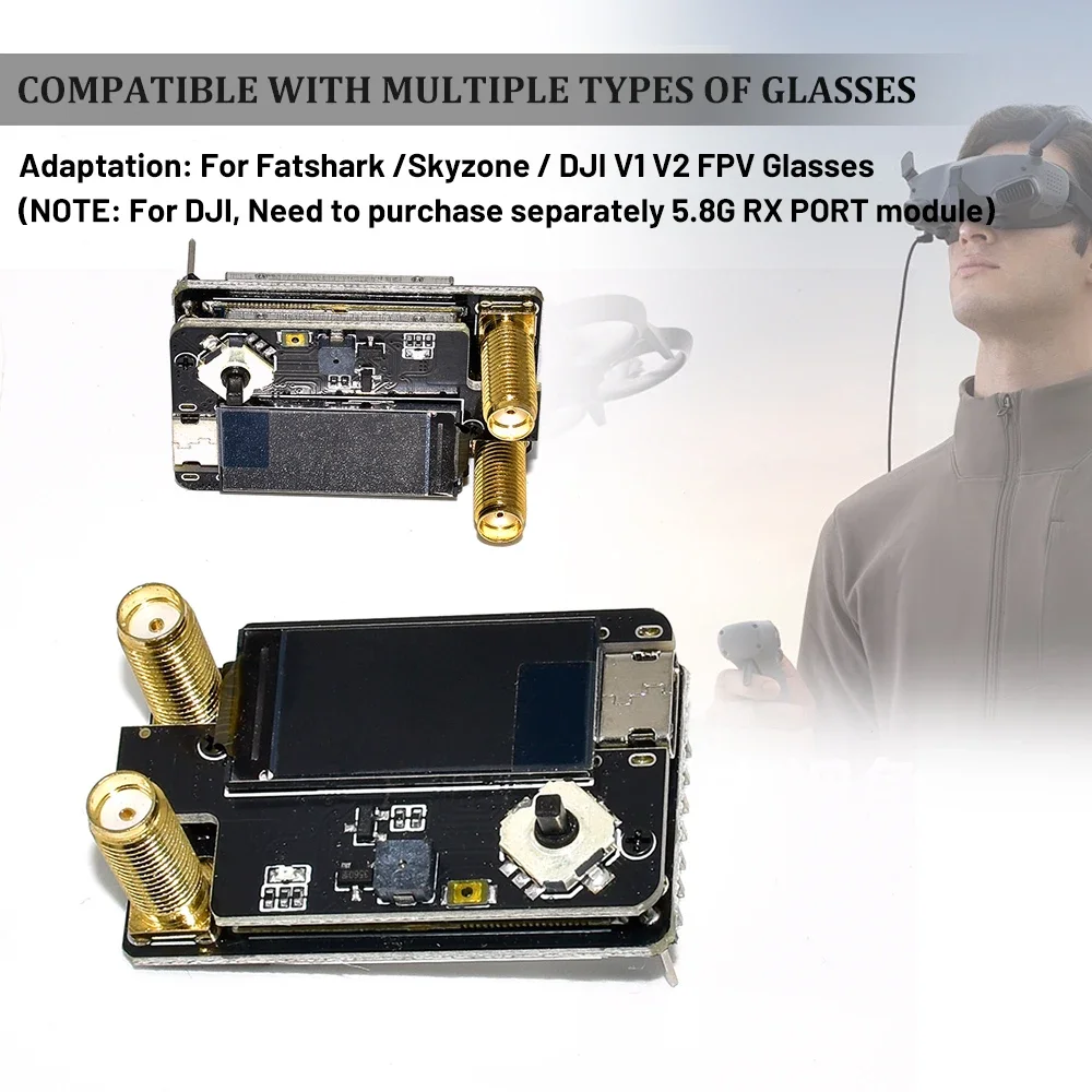 The Dual Receiver Module is your perfect companion for FPV flying, designed for compatibility with DJI V1 V2, Skyzone, and Fatshark models. This compact and sleek module measures just 41mm x 24mm x 18mm, making installation easier than ever. Featuring a 0.96-inch TFT LCD display, it allows for seamless navigation through various settings and real-time signal strength readings. With the advanced ESP32 microcontroller, and the ability to operate on frequencies of 4.9G, 5.8G, and 6.0G, this device ensures reliable performance during your racing drone operations. Elevate your FPV experience with the ease of firmware upgrades through the TYPE-C USB interface.