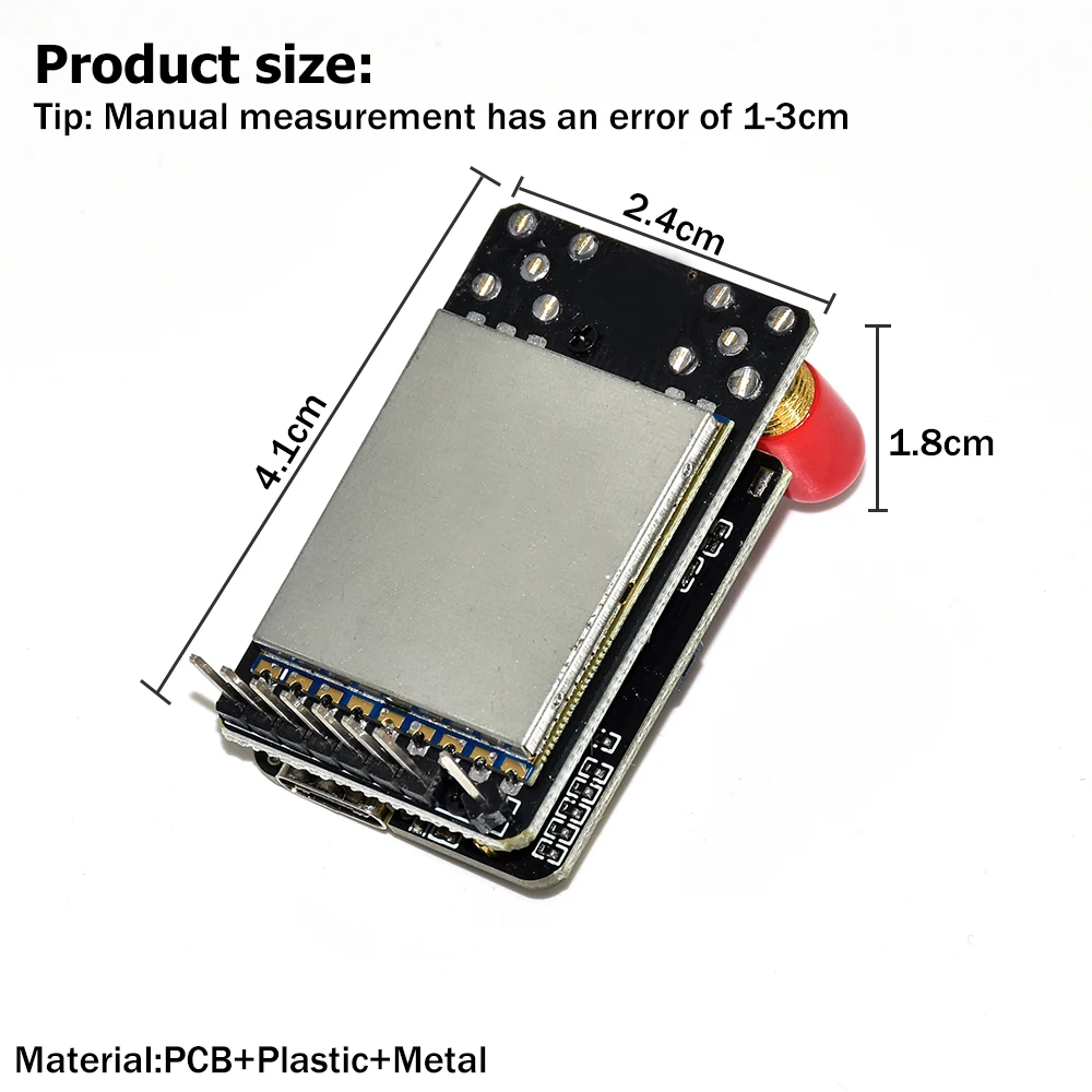 - ESP32 microcontroller and RF receiver sensitivity of -98dBm.