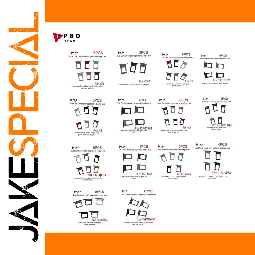 Enhance your iPhone experience with this set of 3 to 6 dual SIM card trays, compatible with models from the 11, 12, 13, 14, 15, and 16 series, including Pro Max, Plus, XR, XS Max, and XSMAX variants. Crafted from durable plastic with precise cutouts, these trays are designed to function as slot drawers or holder chips, enabling easy installation and replacement. Available in various color options such as black, white, gray, gold, and vibrant hues, and offered in configurations like 5pcs dual 13P/13PM, 4pcs dual 14P/14PM, and more, these trays combine practicality with sleek, minimalist style. Ideal for seamless compatibility and reliable performance.