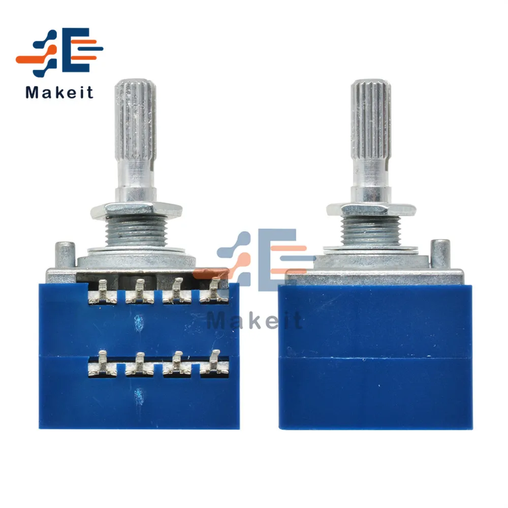 This dual 8-pin stereo audio volume control potentiometer features resistance values of 50K Ohm and 100K Ohm with an exponential taper, designed to ensure smooth, click-free adjustment and balanced stereo output. Its sleek, industrial-style square metal housing paired with a ribbed transparent plastic shaft provides both durability and a refined aesthetic. Ideal for high-end amplifiers, oscillators, filters, and waveform generators, it offers stable, long-term performance and precise control. Crafted for adult audio enthusiasts and audio professionals, this new potentiometer incorporates engineered precision with a modern, minimalist design to enhance your audio equipment’s performance and reliability.