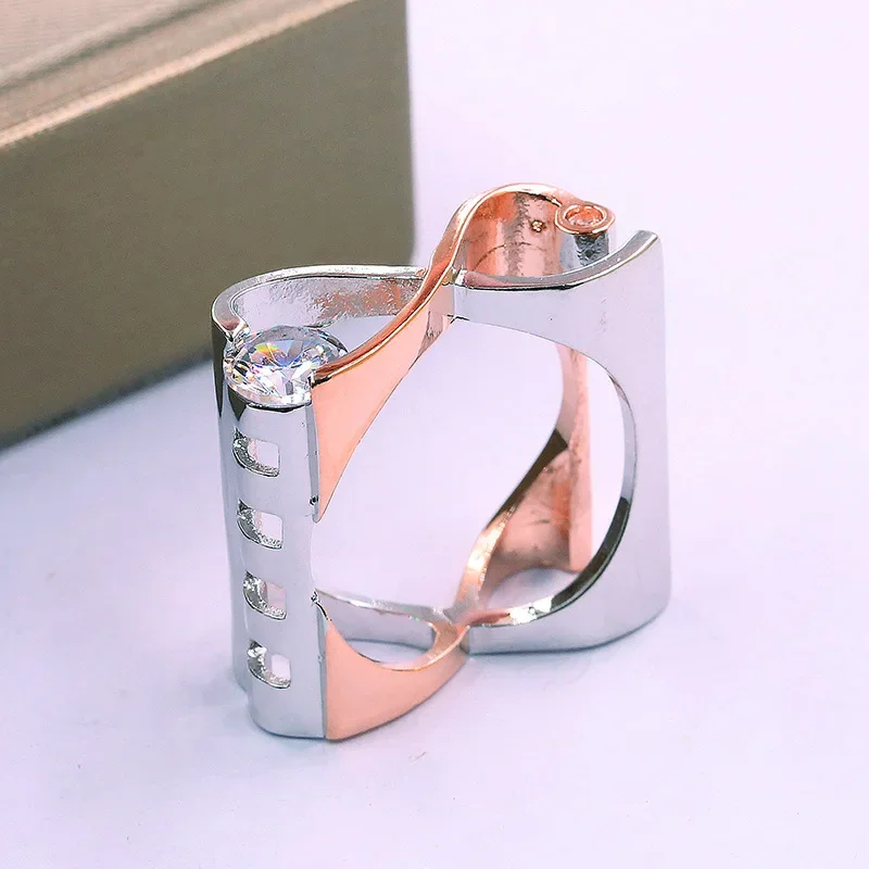 - This dress ring features a dual-tone silver and rose gold design, blending contemporary style with bold contrast for versatile fashion choices.