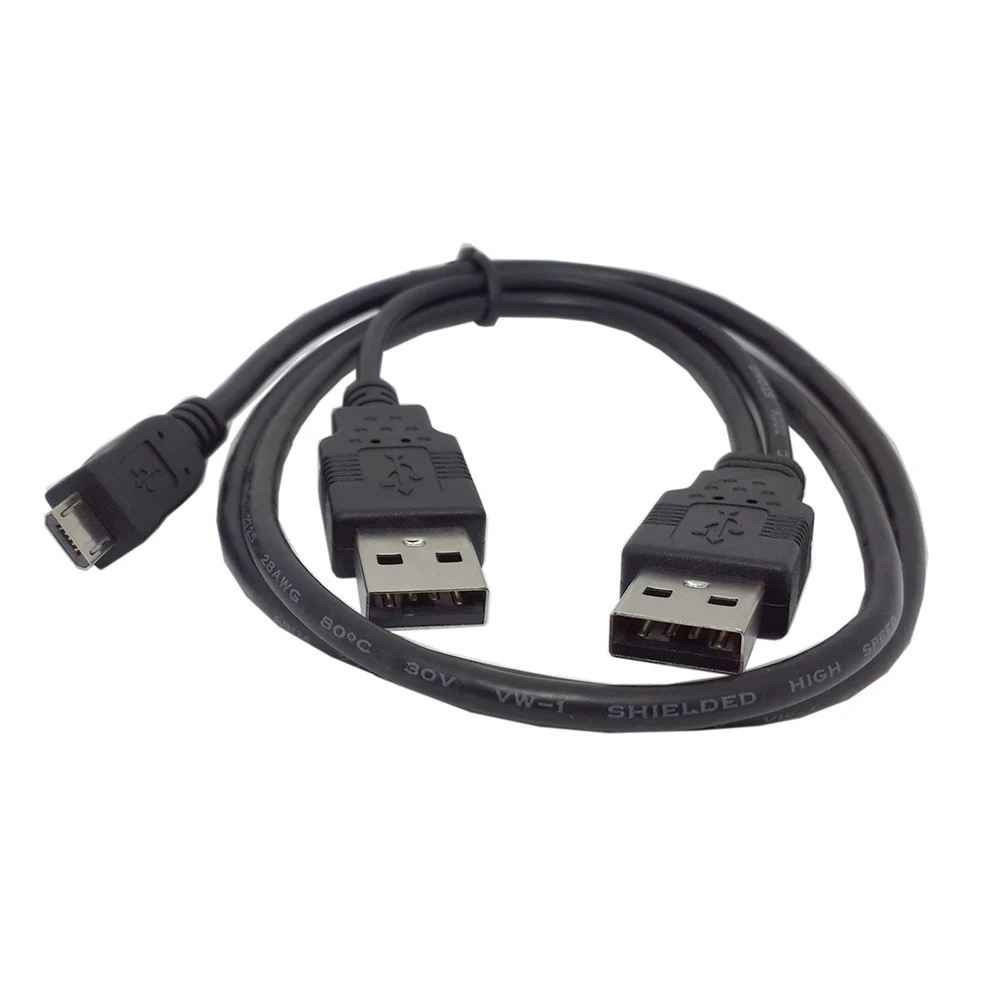 Experience seamless data transfer and reliable power supply with this high-quality dual USB Micro USB hard drive cable. Designed for external hard drives, laptops, and PCs, it features a sleek black exterior that offers both durability and flexibility. The cable measures approximately 0.8 meters, providing ample length for comfortable use. It has two USB Type-A male ports for dual-port power delivery, which simplifies setup without needing extra power lines. The Micro USB connector is compact and rectangular with a slight taper, making it ideal for SATA hard drive enclosures. The connectors are molded with strain relief to prevent damage. Trust this cable for efficient, hassle-free connection and power management of your external drives.