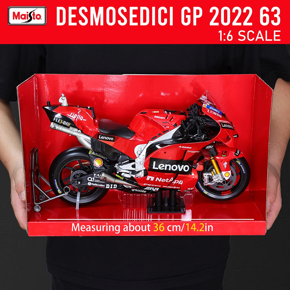 Bring this exquisite model into your collection and relive the excitement of professional motorcycle racing. Its meticulous craftsmanship, detailed features, and authentic styling make it an ideal centerpiece for display at home or in an office. Whether you are a passionate collector or a dedicated racing fan, this model reflects your appreciation for precision and performance. Imagine the admiration it will garner from visitors or fellow enthusiasts. Investing in this Ducati Racing 1:6 scale model means owning a piece of the racing world—perfect for showcasing your passion and elevating your space. Act now and add this remarkable piece to your collection today!
