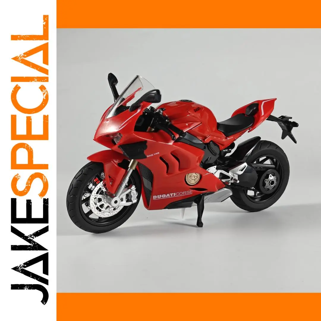 - Designed with a sporty, aerodynamic fairing, angular contours, and detailed decals like “DUCATI CORSE” and “GALE V4S” to replicate the authentic racing bike appearance.
