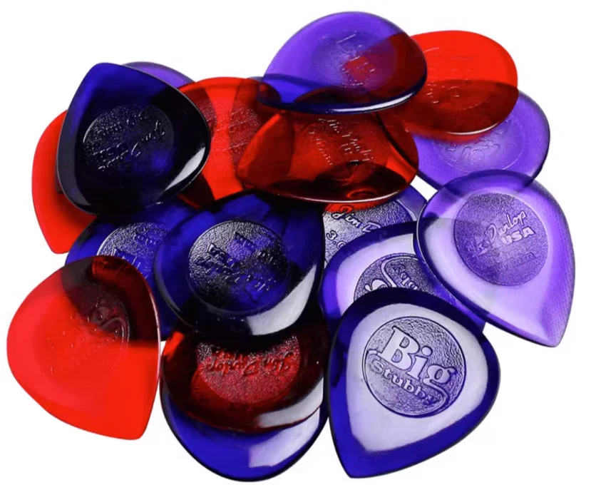 Experience exceptional control and vibrant tone with these high-quality Lexan® guitar picks, available in 1.0mm red, 2.0mm light purple, and 3.0mm dark purple gauges, each approximately 100mm, 200mm, and 300mm respectively. Designed with an ergonomic, contoured shape, integrated center grip, and a precision beveled tip, these picks ensure comfortable handling and articulate playability for both lead and rhythm guitarists. Their glossy, translucent finish reflects light beautifully, adding an eye-catching aesthetic to your playing. Built for durability and fast attack, they deliver bright, clear sound with every strum, helping you perform at your best.