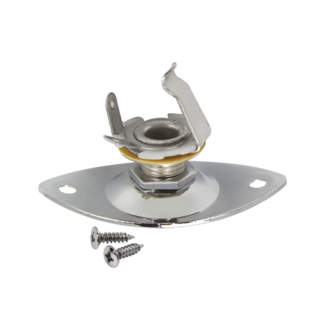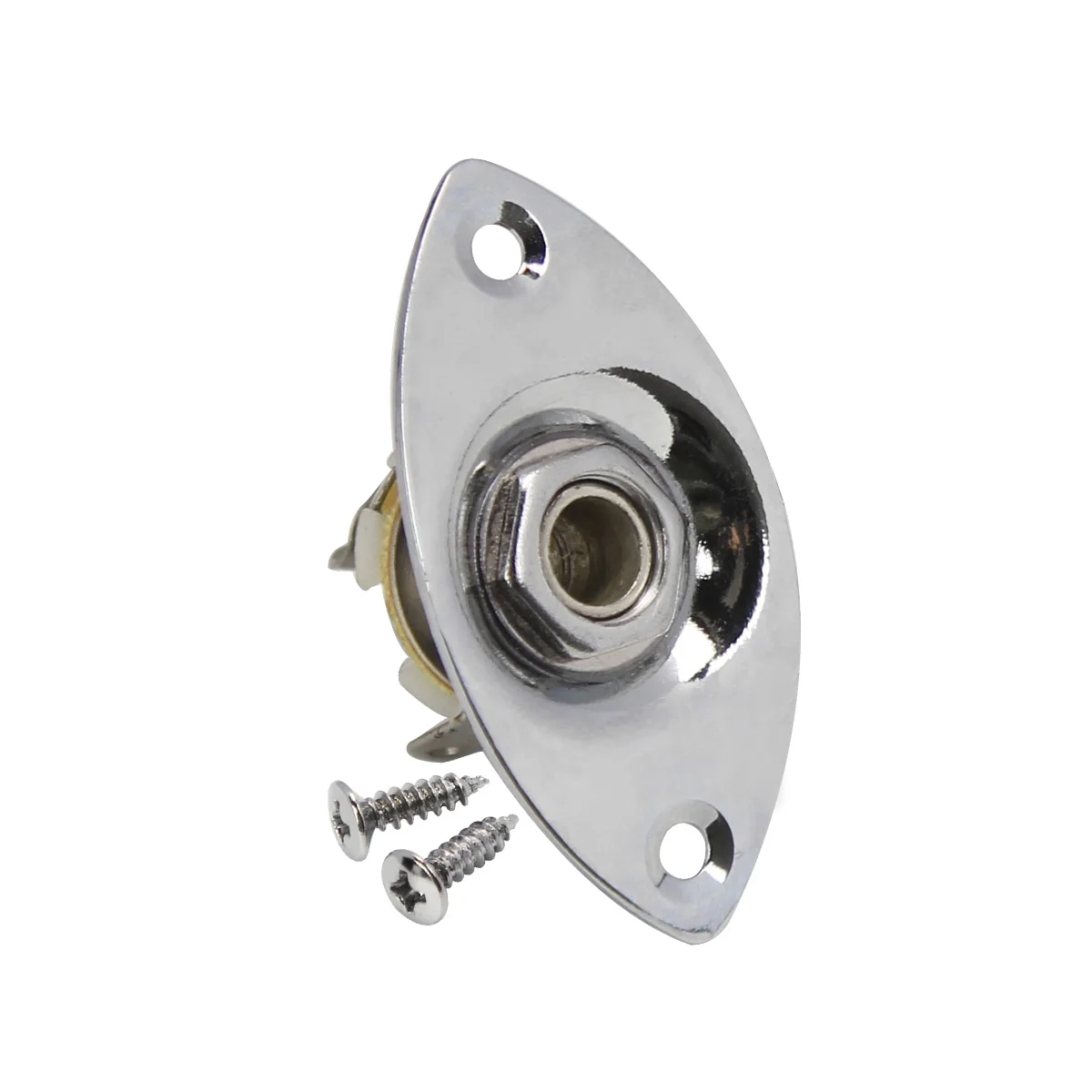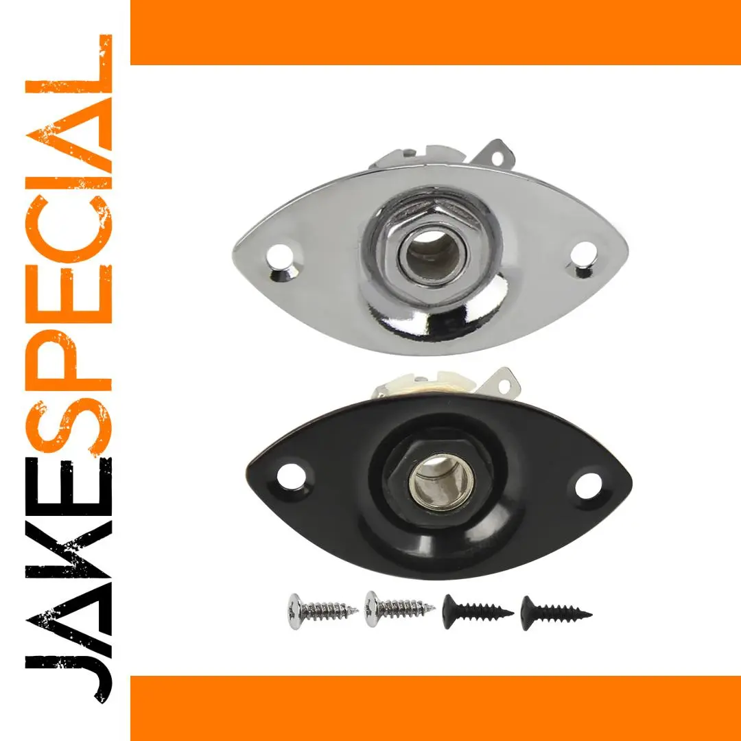 Picture yourself upgrading your instrument with this stylish and durable 1/4” mono guitar jack output socket. Crafted from high-quality, rust-resistant metal, it features both a shiny chrome finish and a matte black option, fitting seamlessly into your guitar's aesthetic. Its precise dimensions of 48mm by 25.5mm make it a perfect replacement for worn or noisy jacks, ensuring a stable, noise-free connection. The ergonomic oval shape and symmetrical mounting holes, spaced 37mm apart, make installation straightforward and secure. With a focus on durability, high sensitivity, and noise reduction, this socket is designed to improve your instrument's performance, giving you peace of mind during every performance or practice session.