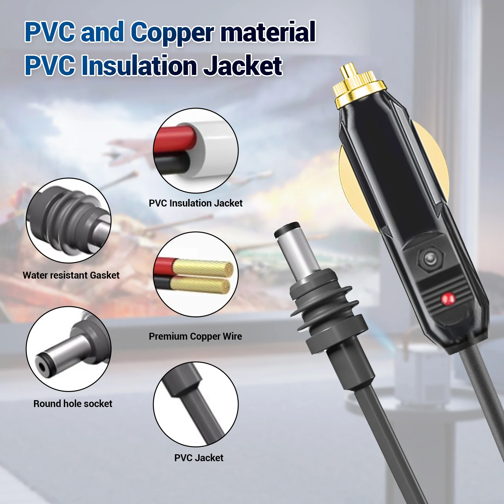 Experience reliable power connectivity with this durable DC car power cable available in lengths of 2m, 5m, and 10m. Crafted with 18 AWG pure copper wire and premium PVC insulation, it ensures efficient power transmission and long-lasting performance. Its IP68 water resistance safeguards against harsh weather conditions, making it ideal for outdoor and heavy-duty use. The reinforced, thicker metal connectors provide a robust, corrosion-resistant connection, while the plug-and-play design allows for quick, hassle-free installation across various vehicles, including cars, trucks, buses, lorries, and boats. A perfect solution for seamless, heavy-duty power supply in demanding environments.