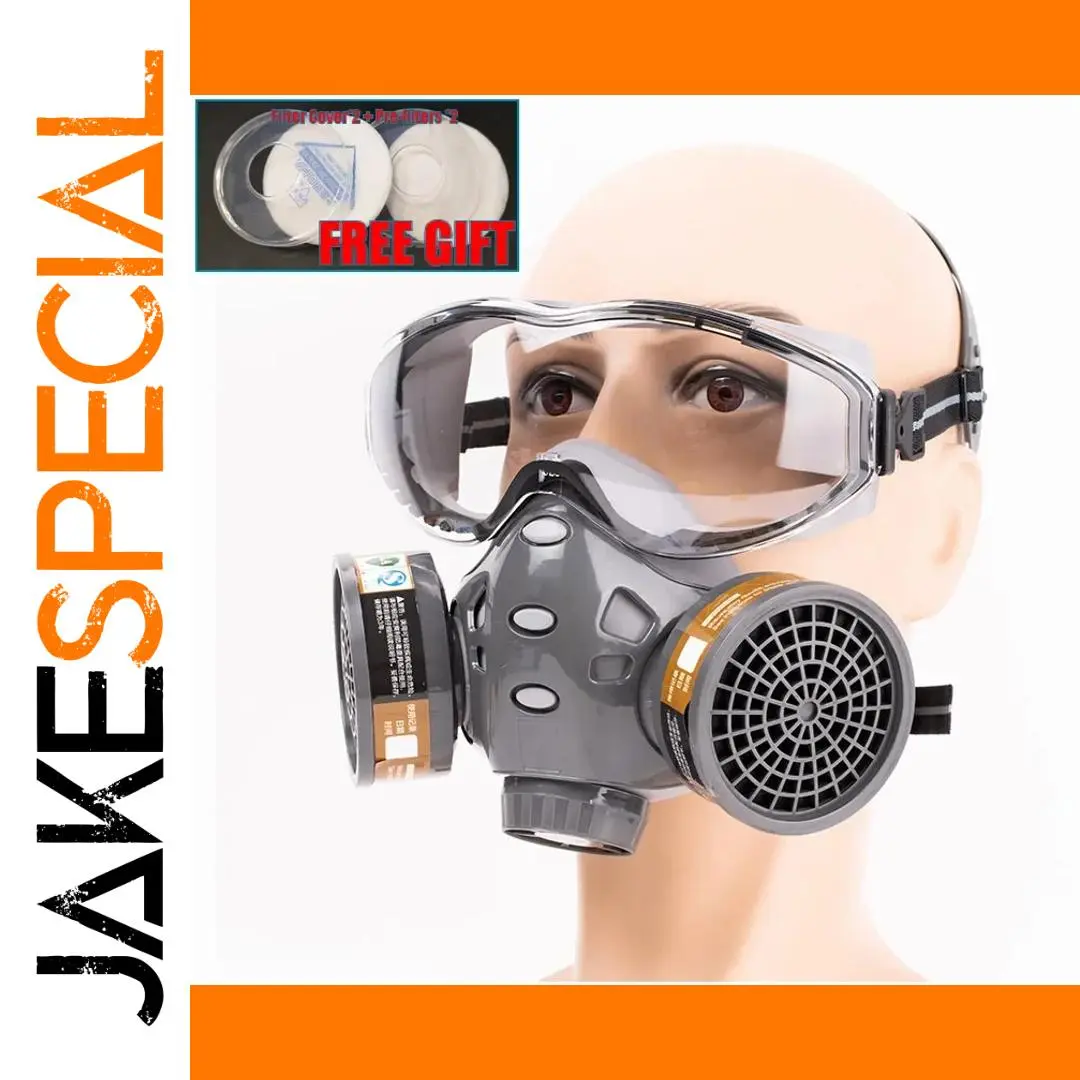 This durable 2-in-1 dust, gas, and chemical respirator is designed for industrial and occupational use, offering high-quality adjustable dual filter cartridges, a breathing valve with double sealing technology, and impact-resistant polycarbonate safety glasses. It effectively filters low-toxicity organic vapors such as benzene homologues, gasoline, acetone, and carbon disulfide, making it ideal for painting, pesticide spraying, chemical industries, mining, laboratories, and daily haze protection. Constructed from high-realist, shape-maintaining material, the mask features an adjustable 2-point head belt for a secure and comfortable fit. Compatible with cotton filters, filter boxes, and mask sets, it provides reliable safety with a one-year manufacturer warranty.