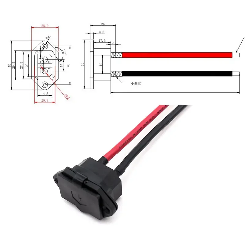 Experience reliable electric vehicle charging with this durable 2+4 power plug, rated for 40A and 220-240V AC. Made with a flame-retardant PA shell and featuring gold-gilded copper contacts, this robust connector ensures safe, high-quality conductivity for both AC and DC interfaces. Designed to operate at 24V and 30A, it offers optimal performance for lithium battery applications, adhering to CE standards. Its compact dimensions and sturdy construction make it ideal for secure, long-lasting connections in electric vehicle charging and discharging systems, providing confidence in your energy management setup.