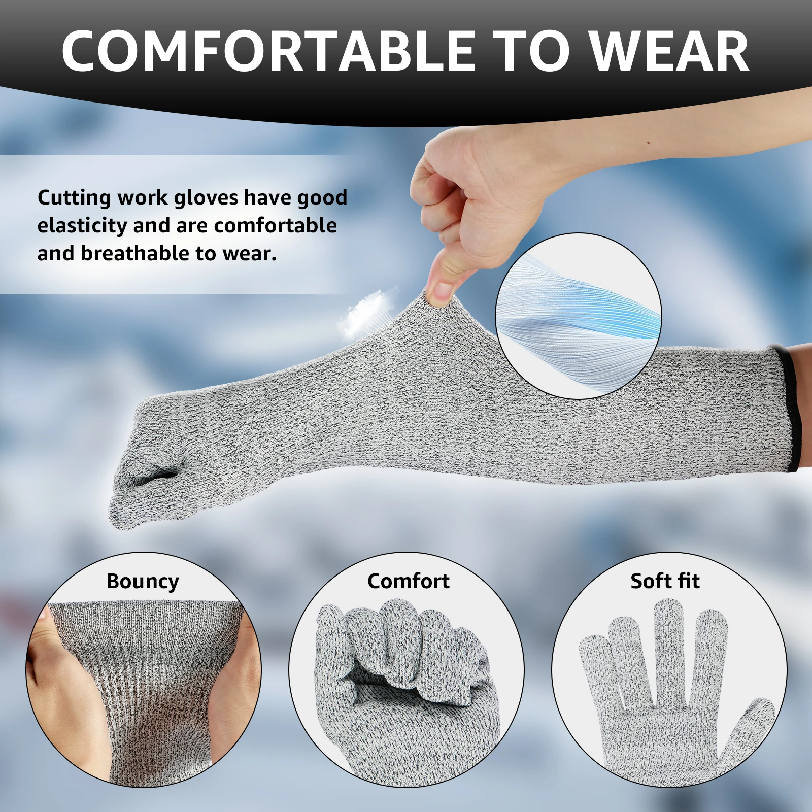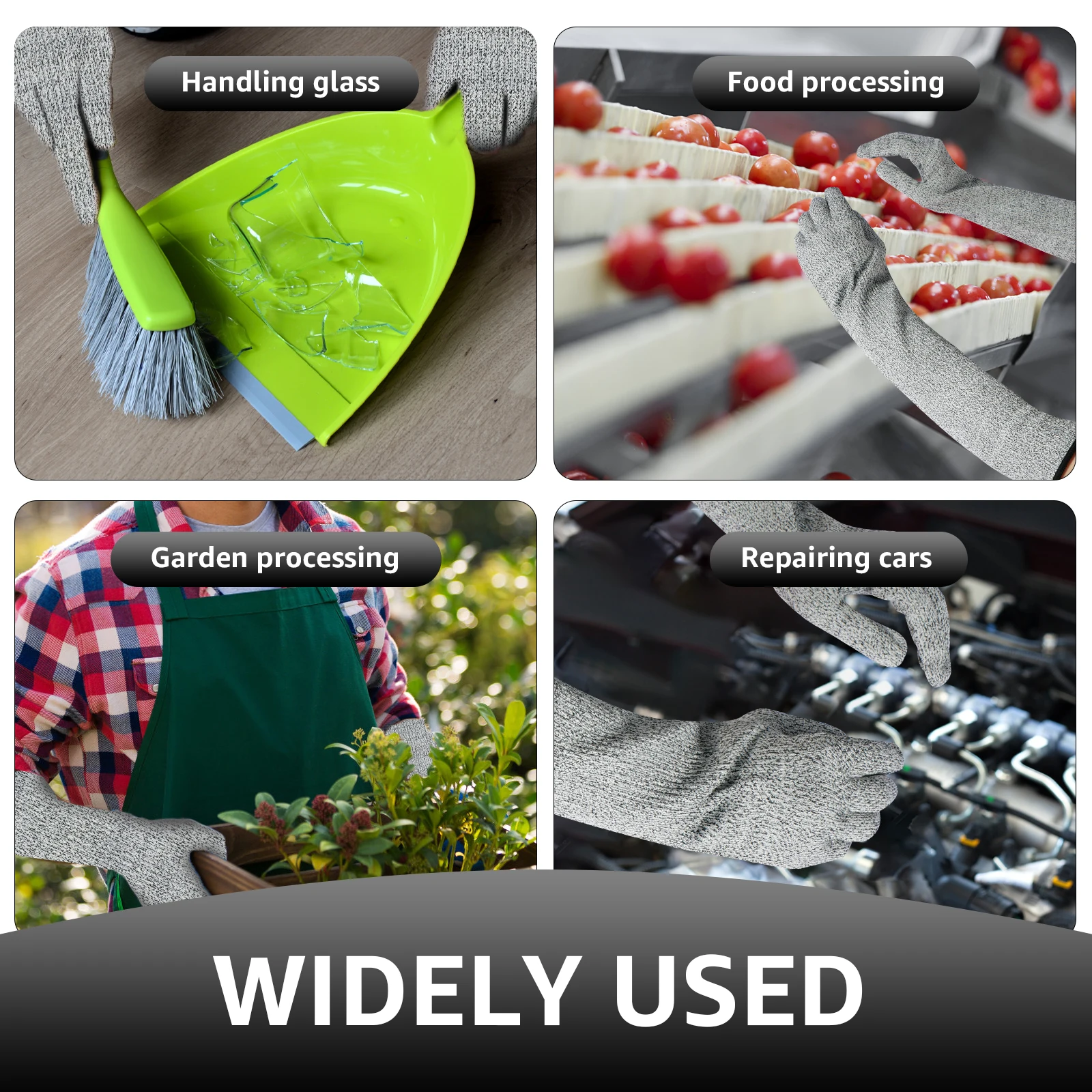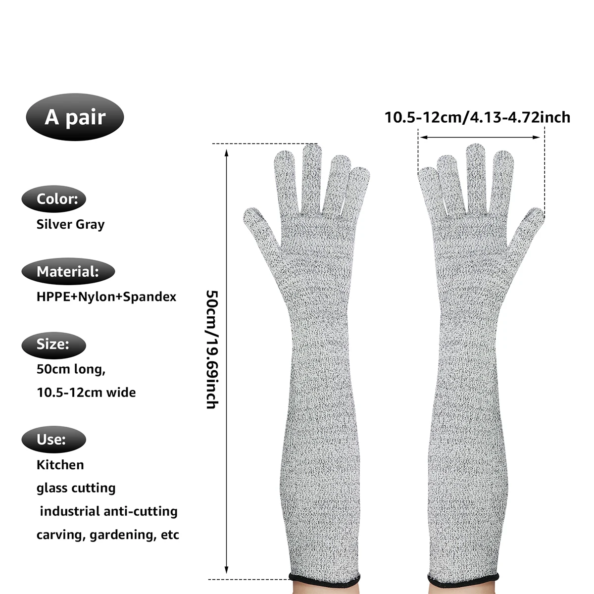 Imagine confidently handling fragile glass, sharp tools, or hot surfaces with this pair of this durable arm protection gloves. Crafted from a premium blend of HPPE, nylon, and cotton, these gloves are 50 cm long with a flexible, breathable knit that offers maximum comfort during long work sessions. The textured surface provides a secure grip while the reinforced areas ensure resilience against cuts, abrasions, and punctures. Ideal for a variety of demanding tasks such as industrial cutting, gardening, woodworking, or food processing, these gloves combine safety with practicality. Their sleek silver-gray finish delivers a professional look, while the snug fit prevents slipping, helping you stay focused and safe in every job.