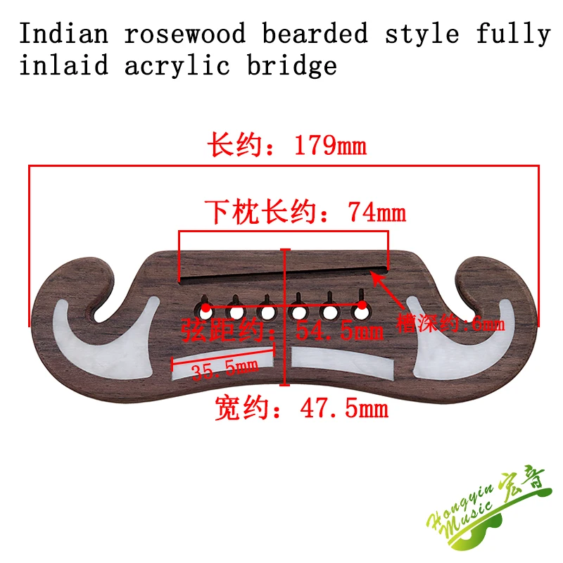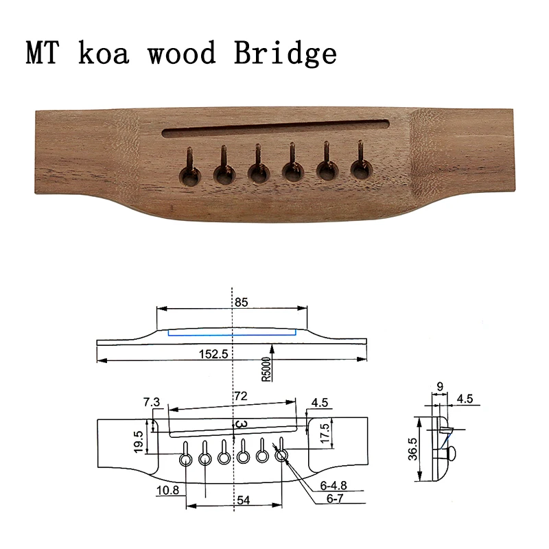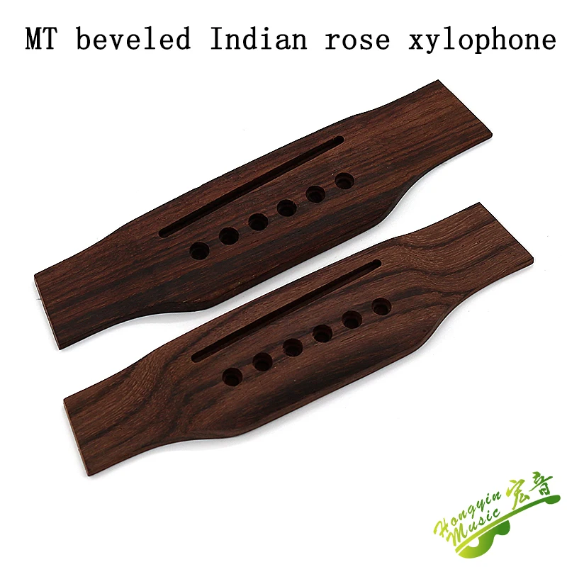 Experience the perfect blend of craftsmanship and functionality with this high-quality acoustic guitar bridge designed specifically for six-string models. Made from premium woods such as ebony, rosewood, wenge, koa, and more, this bridge offers a natural aesthetic with smooth, polished surfaces that highlight the beautiful wood grain. Its dimensions are tailored for standard folk or similar guitars, providing an ideal fit without modifications. Featuring six partially drilled, 3mm pre-drilled holes, it allows for easy customization to match your guitar's specifications. The adjustable string positioning ensures optimal tension and tonal quality, making it suitable for professional repairs or custom builds. Whether you're replacing a worn-out bridge or building a new guitar, this component guarantees durability and precise fitment.