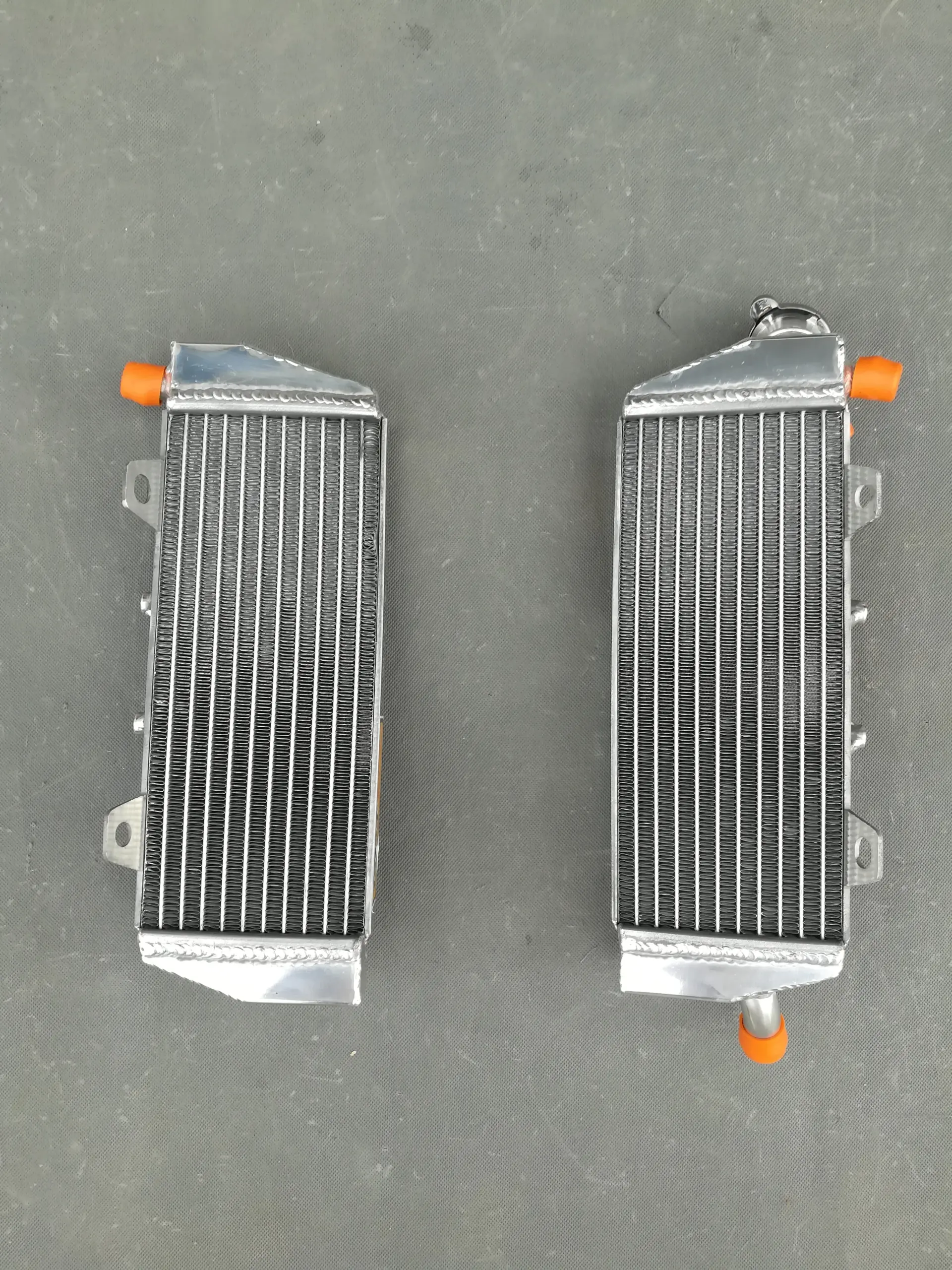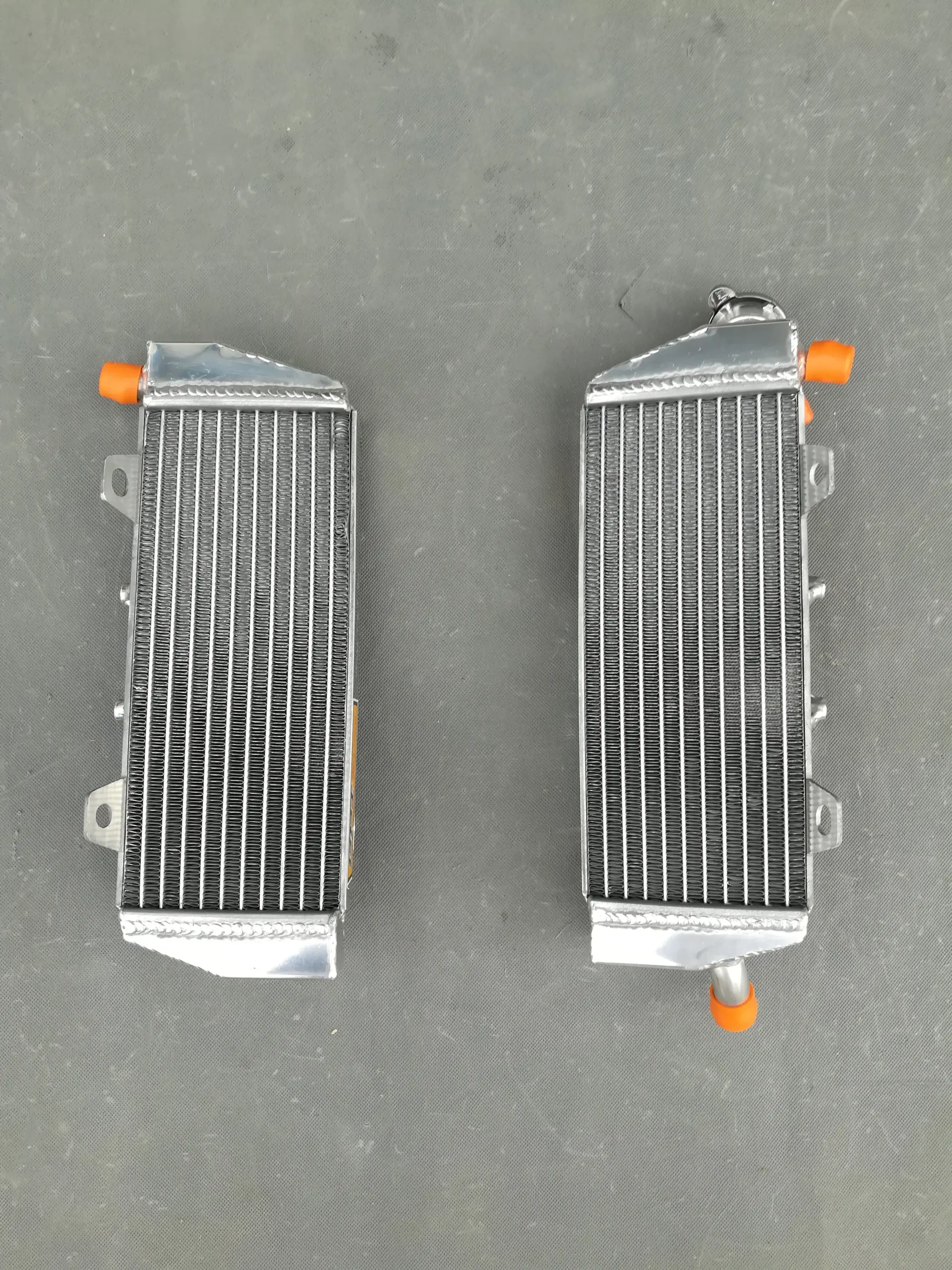 Enhance your off-road motorcycle’s cooling system with this durable pair of aluminum radiators, compatible with 2016-2018 KTM 125-150 SX, KTM 250-350 SX-F, KTM 150-250-300 XC-W, Husqvarna FC250-350, TE125-250-300 models. Crafted from T-6061 aluminum, both core and tanks are TIG welded, with the core vacuum brazed for high durability and no epoxy use. These heavy-duty radiators offer approximately 40% increased cooling capacity, surpassing OEM standards, while remaining lightweight and installation-friendly with minimal modifications needed. Designed for reliability and performance, they come with a 1-year warranty against manufacturing defects, making them an excellent upgrade for demanding off-road riding.