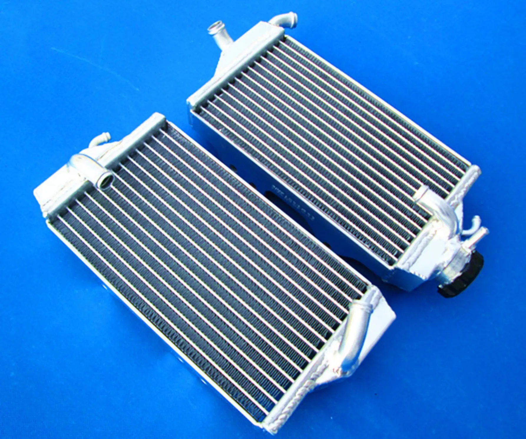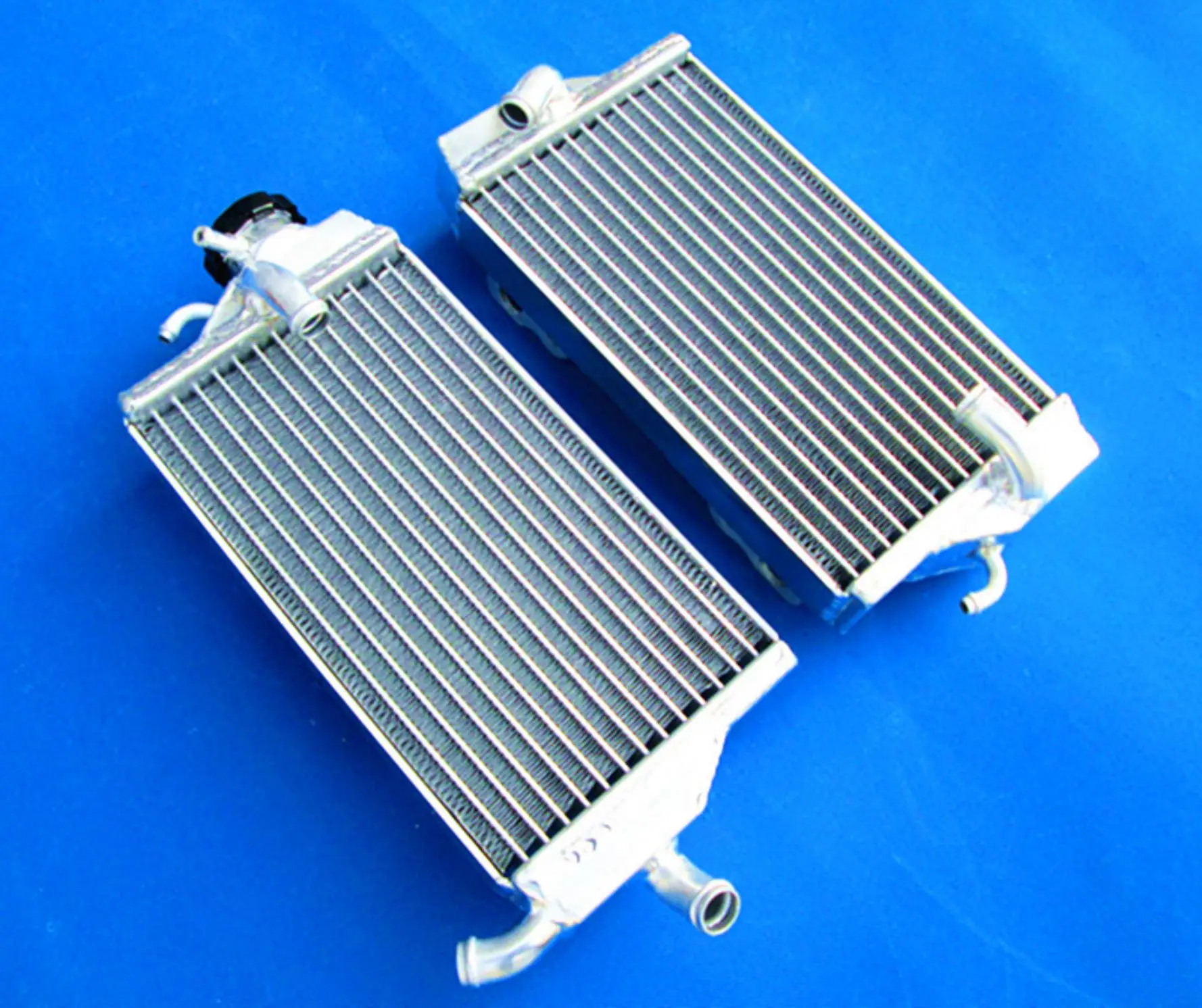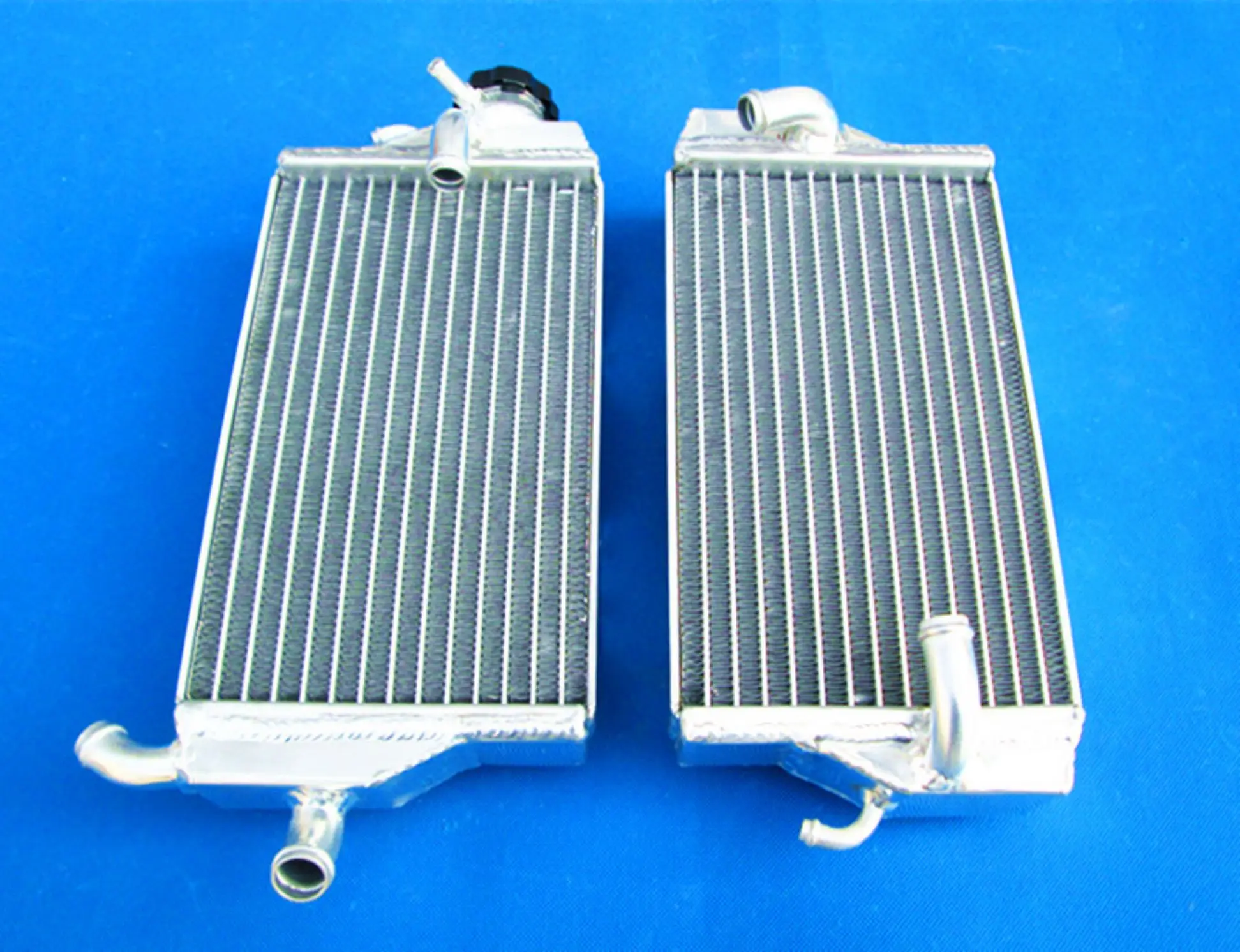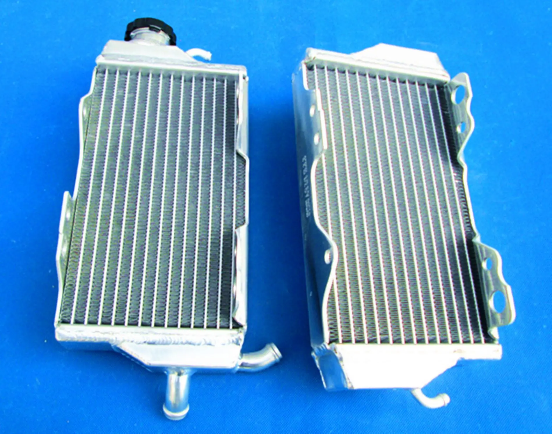 Experience enhanced cooling performance with this set of heavy-duty aluminum radiators, specifically designed for 2000-2001 Honda CR250R models. Crafted from high-quality T-6061 aluminum, the radiators feature a sleek metallic silver finish, with cores vacuum brazed and tanks fully TIG welded for superior durability and integrity. They provide approximately 40% greater cooling capacity than standard models, making them ideal for demanding riding conditions. The right and left units are easy to install with minimal modifications, ensuring a secure fit. Brand new and backed by a 1-year warranty against manufacturing defects, these radiators combine functionality and robustness for optimal motorcycle performance.