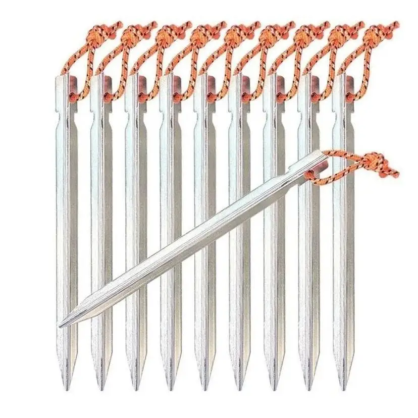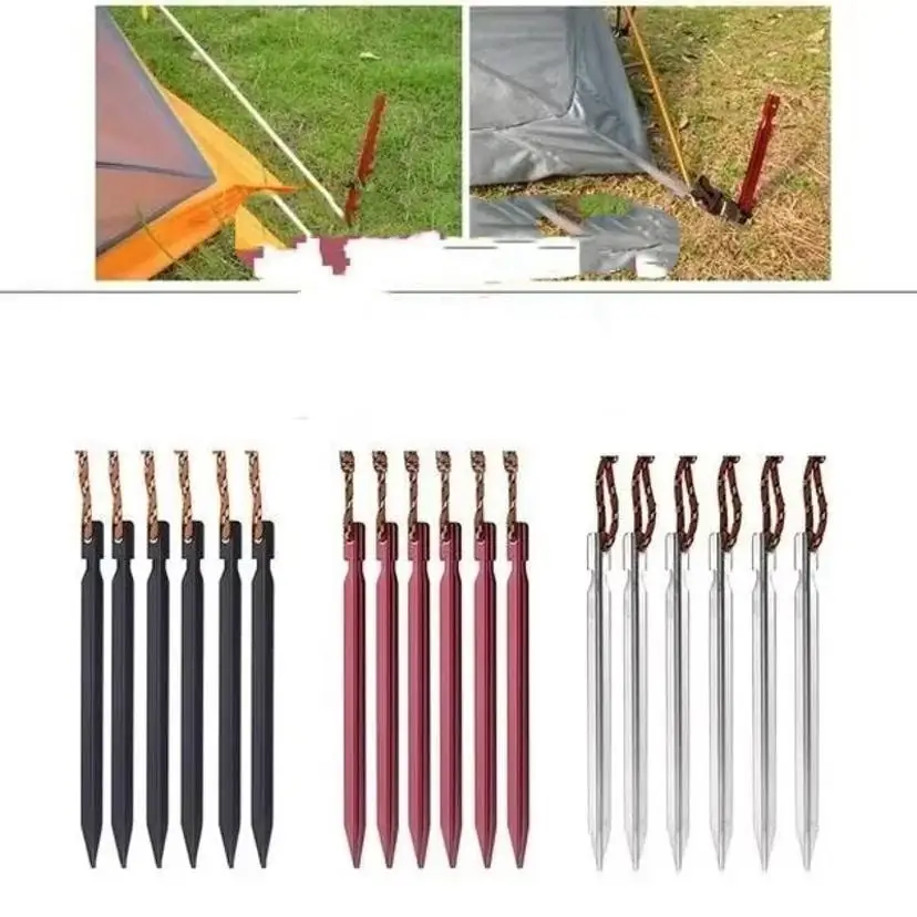 Secure your tent confidently with this high-quality aluminum alloy tent peg, approximately 18 cm long and 1.3 cm wide, featuring a durable three-sided design for a strong grip in diverse soils. Its corrosion-resistant finish and tough construction ensure long-lasting reliability, while the rope connection point allows easy attachment to windproof ropes for enhanced stability. Available in vibrant colors such as red, black, gold, white, blue, yellow, and green, this versatile camping accessory is perfect for outdoor tents, shelters, and backpacking setups. Its sleek, lightweight design makes it a must-have for outdoor enthusiasts seeking dependable, easy-to-use tent stakes that combine functionality with style.