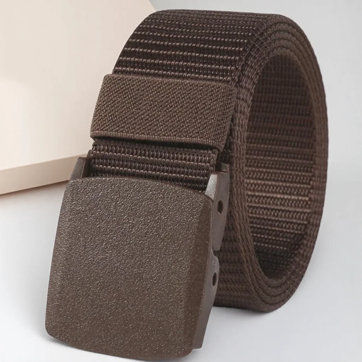 Experience superior durability and comfort with this rugged beige tactical belt, expertly crafted from high-quality nylon and canvas materials. Designed for outdoor enthusiasts and professionals alike, this belt offers a perfect balance of practicality and reliability. Its textured, woven surface showcases a robust, rugged aesthetic, reinforcing your readiness for any adventure. With a length of 125cm and a width of 4cm, it provides a snug, adjustable fit suitable for various activities, from daily wear to intense outdoor sports like rock climbing or mountaineering. The matte plastic buckle is hypoallergenic, durable, and metal-free, ensuring smooth security checks without compromising strength or functionality. This versatile belt is your ideal companion in demanding environments.