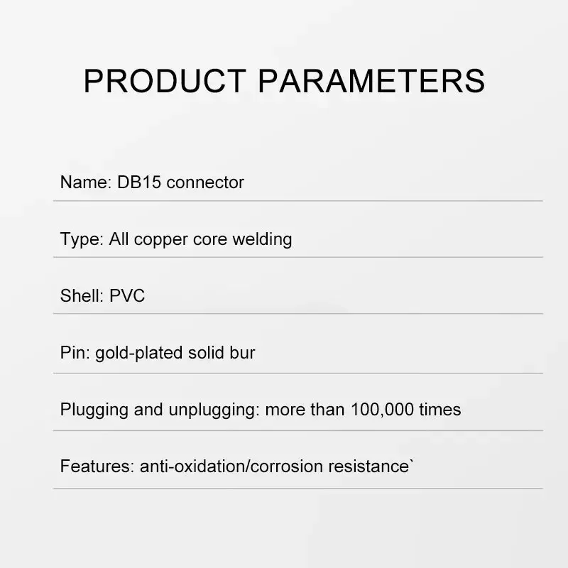 - High-quality DB15 15-pin connectors with gold-plated pins for optimal conductivity and corrosion resistance.
