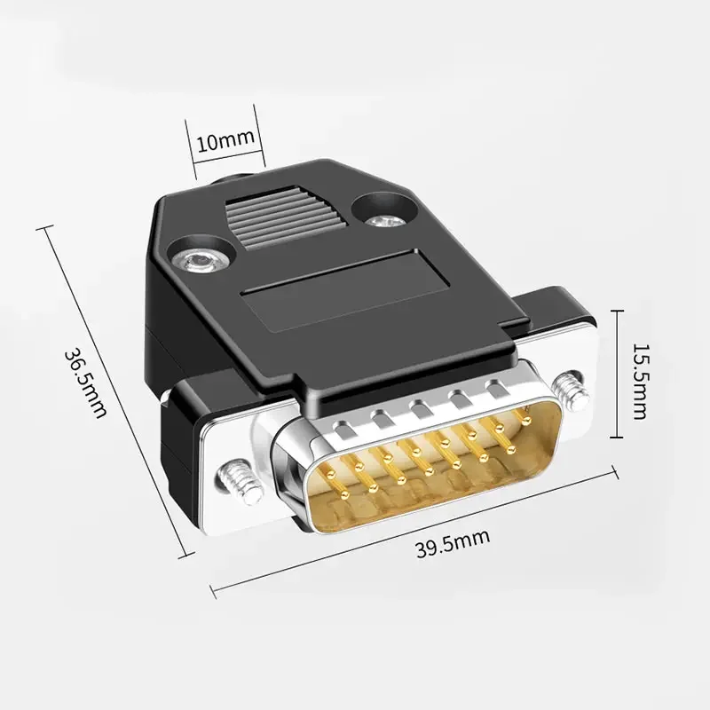 Enhance your electronic setup with this precision-made DB15 serial port connector, combining durability, style, and high technical standards. Perfect for professionals seeking reliable connections, its premium materials and secure design ensure long-term performance. Whether for industrial automation, computer interfacing, or hobby projects, this connector set offers an optimal solution. The assembly’s sleek black finish and metallic accents complement a wide range of technical environments while its technical specifications guarantee excellent electrical performance, safety, and durability. Trust this DB15 connector for your high-end connection needs today!