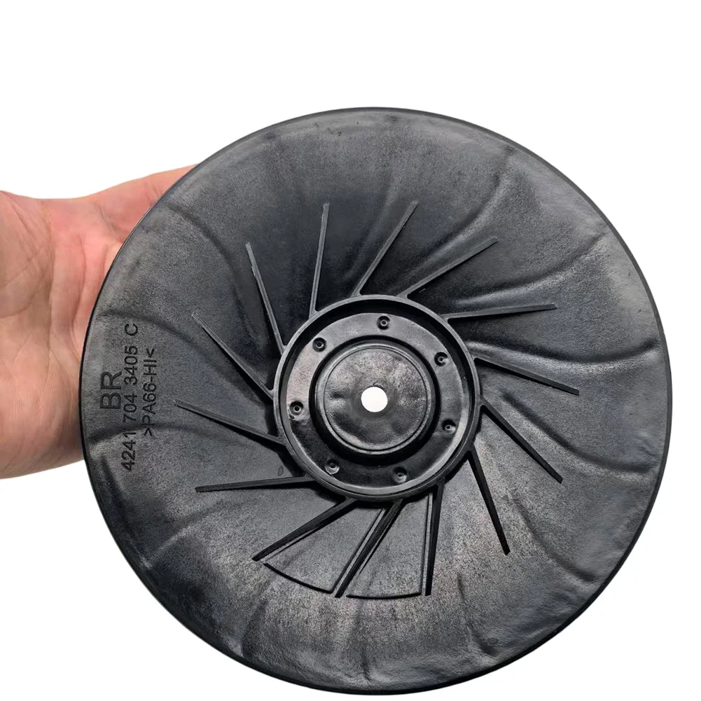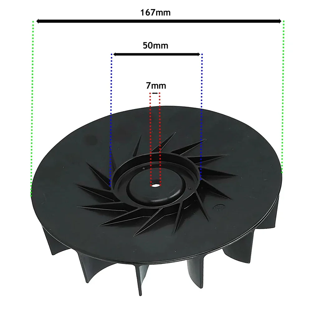 Enhance your garden blower or shredder with this durable set of two black plastic impeller fans, each measuring 167mm in diameter and 48mm in length, with a 7mm center hole. Designed for seamless compatibility with models like BG56, BG86, SH56, and SH86, these impellers optimize airflow and shredding performance for efficient debris management. Crafted for long-lasting outdoor reliability, their aerodynamic, streamlined blades improve debris intake and mulch production. Easy to install, these high-quality fans provide an essential upgrade to maintain peak performance in your outdoor power tools, ensuring smooth, efficient operation in all gardening conditions.
