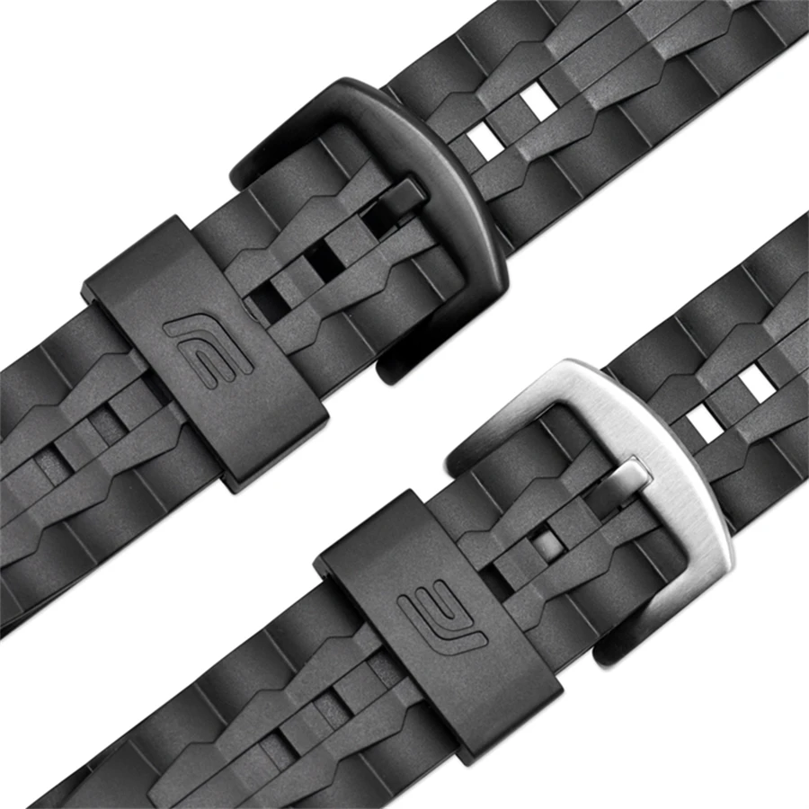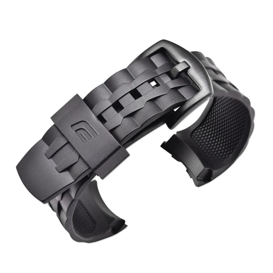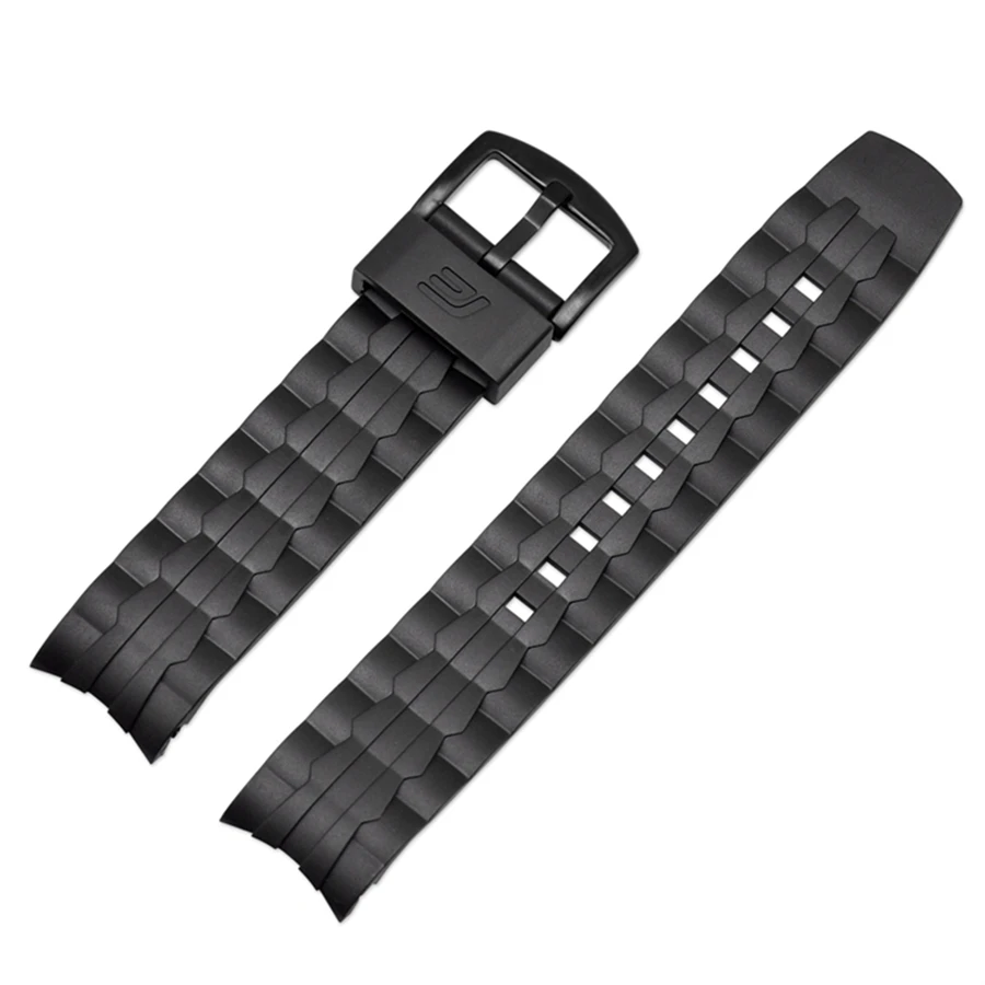 Experience a seamless blend of style and function with this waterproof black watch strap specially designed for Edifice EF-550 and EF-523 models. Made from soft, durable PU material, the strap offers a matte finish that’s comfortable on the skin and resistant to water and daily wear. Its textured, ribbed surface with rectangular raised segments adds a modern, sporty look while providing extra grip and durability. The ergonomic design ensures a slim profile of approximately 3mm, making it ideal for active lifestyles. With options featuring black or silver stainless steel pin buckles, this strap enhances the watch’s aesthetic while offering custom styling. Easy to install and adjust, it makes your Edifice watch truly stand out.