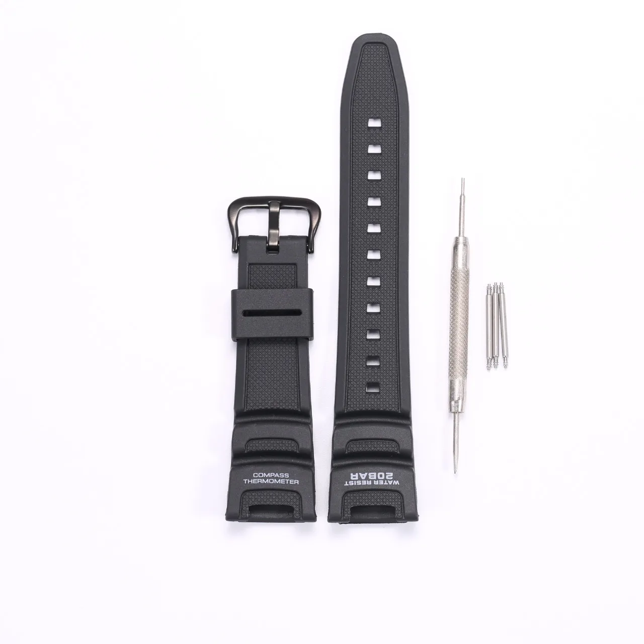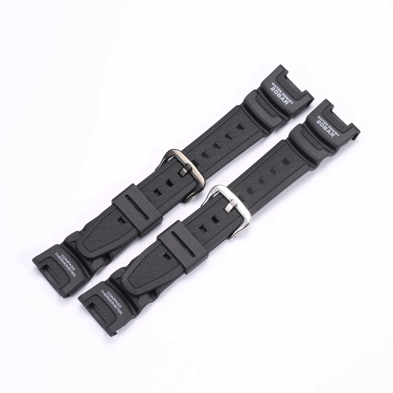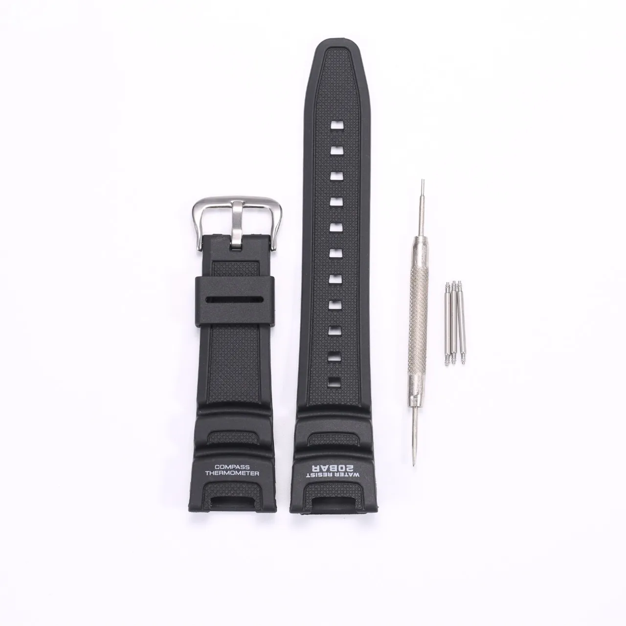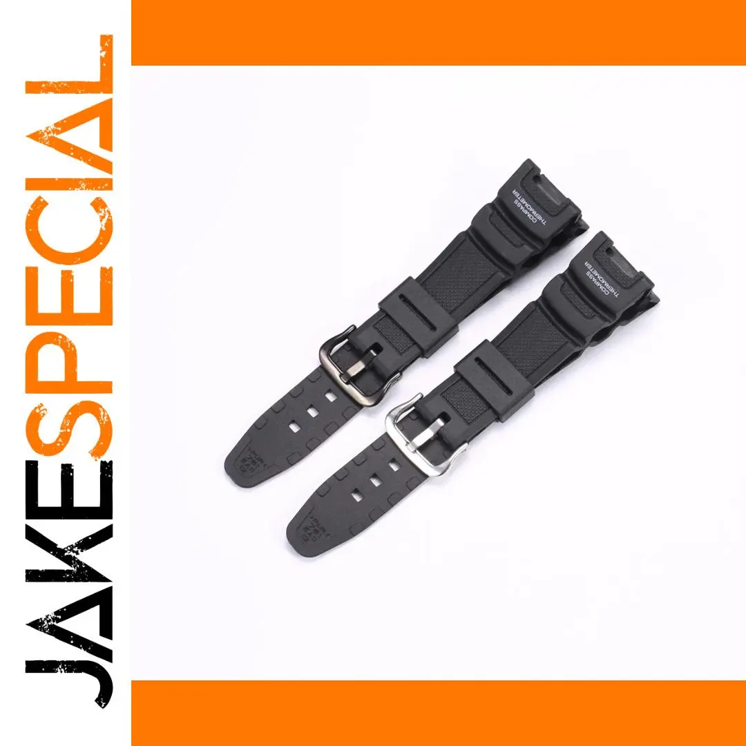 Enjoy the sleek and sporty look of this resin watch strap designed specifically for the Casio G-Shock SGW-100 model. Its textured, black surface with small, square perforations offers breathability and a modern aesthetic. Crafted from durable resin, it promises longevity even during rigorous activities. The reinforced attachment points and tapered ends with multiple adjustment holes ensure a perfect, secure fit for active adult users. Equipped with stainless steel pin buckles—available in silver or black—these straps add a rugged yet sophisticated touch. Ideal for sports and waterproof use, this strap enhances your watch’s comfort and style, blending practical features with a contemporary, utilitarian appeal that’s perfect for everyday wear or intense workouts.