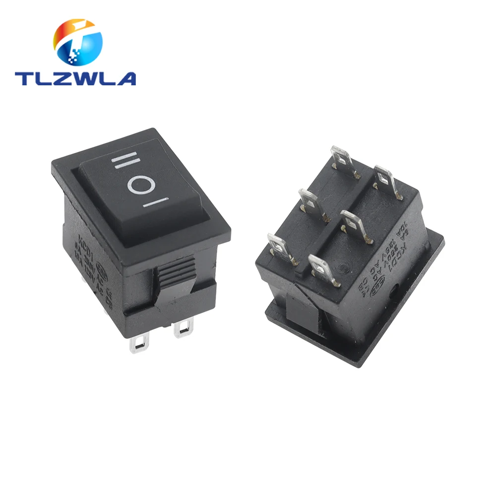 Experience seamless electrical management with this durable boat rocker switch, designed for precision and longevity. Its sleek black plastic housing features a compact 21 x 15 mm size, making it ideal for panel installation in various applications. The switch offers both 2-position and 3-position configurations, with clear ON and OFF symbols in contrasting white for quick identification. Built with six pins for secure connections, it supports high-current operations of 6A at 250V and 10A at 125V, suitable for demanding environments. Its sturdy construction, combined with RoHS and CE certifications, ensures safety and compliance. Whether used on boats, industrial equipment, or custom control panels, this switch delivers reliable performance and easy toggling, seamlessly fitting into your setup for optimal circuit management.