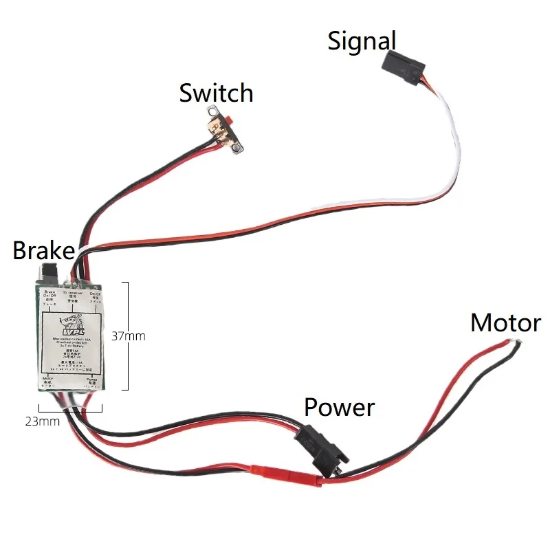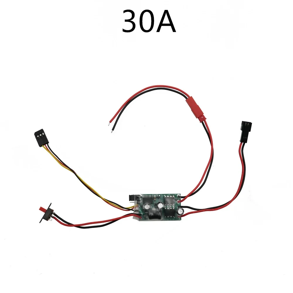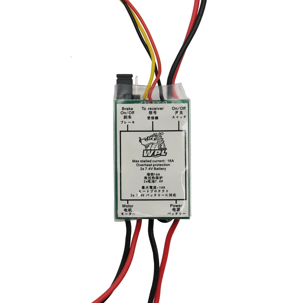 This high-quality brushed ESC speed controller is designed for 1/12 and 1/16 RC cars, compatible with models including WPL C14, C24, C64-1, B24, B16, B36, D12, MN99S, MN, and D90. Constructed from durable composite material, it supports current ratings of 16A and 30A, providing reliable power management for your RC vehicle. The compact and organized design features a sleek dark green circuit board with black, red, yellow wires, and matching connectors, offering a practical and modern aesthetic. Ideal for upgrade projects, this ESC is suitable for advanced hobbyists aged 14 and above.
