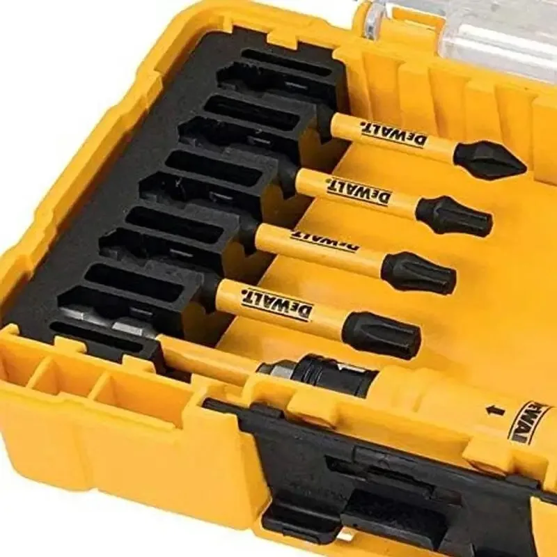 - Designed with bold black tips and yellow accents, these bits reflect DEWALT’s durable branding while providing excellent visibility and easy identification.