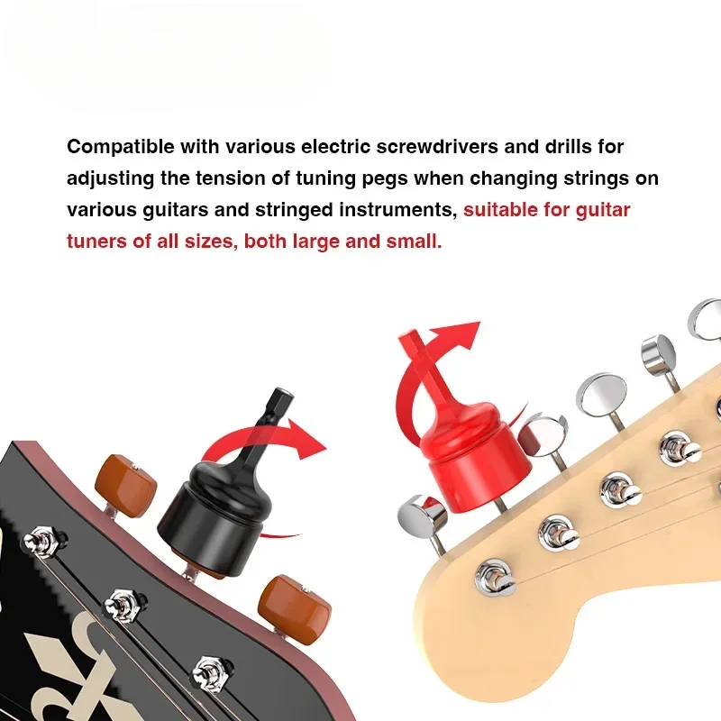 Transform your guitar maintenance routine with this sleek, professional-grade electric guitar peg winder. Crafted from high-quality metal, it’s designed to offer durability and reliability for acoustic and classic guitar string changes. Its compact, ergonomic form features a cylindrical dark gray or black metallic body with a textured handle, ensuring a secure grip during use. The device's polished metallic socket head accommodates various attachments, including vibrant red magnetic winders and pink handles, providing versatility across different guitar types. Its streamlined, modern aesthetic combines practical functionality with a stylish look, making it a perfect addition to your guitar tool kit. Effortlessly change strings with this dependable, lightweight tool that fits comfortably in your hand, giving you total control at every step.