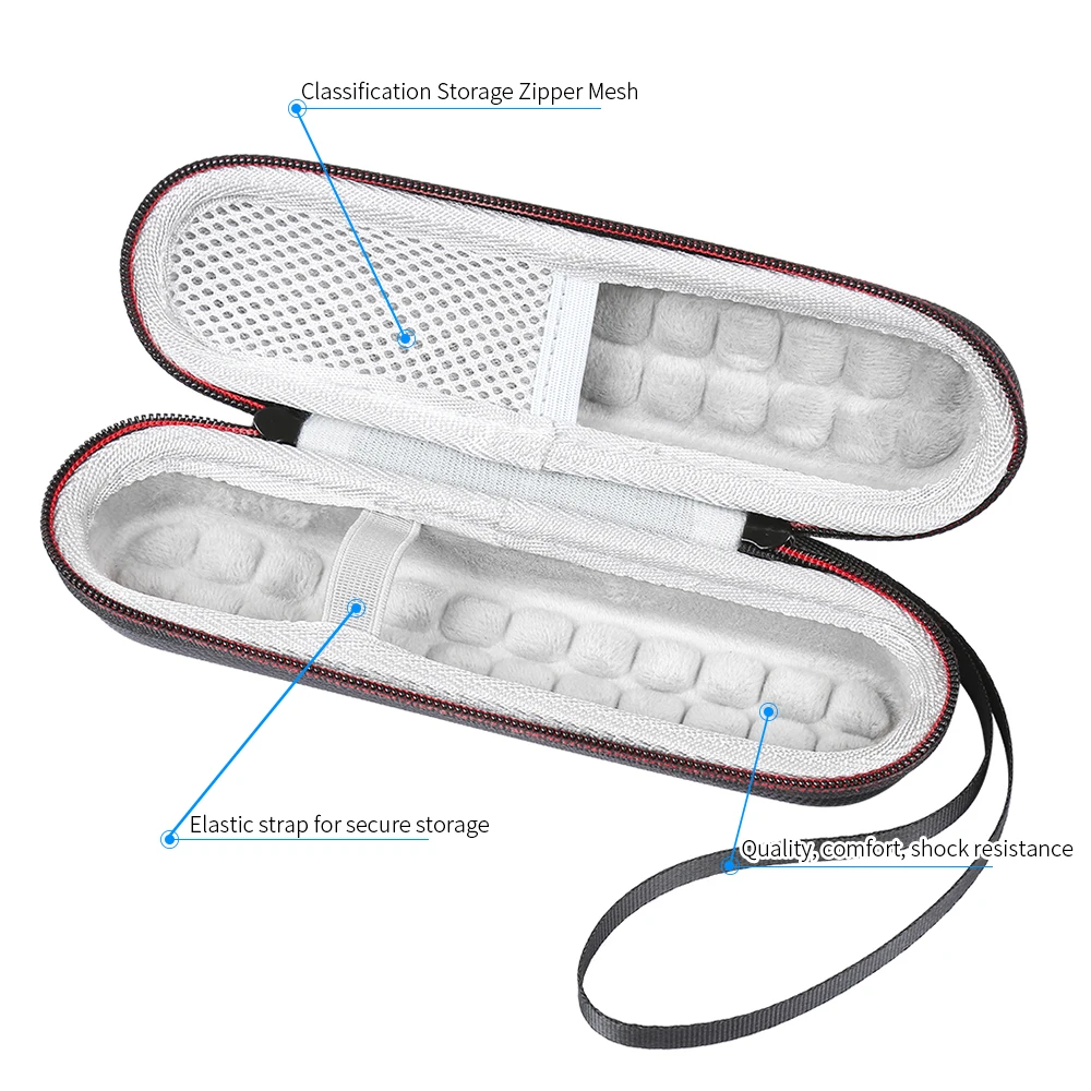 Imagine keeping your small electric torch perfectly protected and organized in this sleek, black storage bag. Crafted from high-quality, wear-resistant, and pressure-resistant fabric, it guarantees durability and long-lasting use. The soft, shock-absorbing sponge lining cushions your flashlight, preventing damage during transport. The contoured foam insert with small rounded indentations secures the torch in place, while transparent mesh pockets and elastic straps hold accessories securely. The compact, elongated oval shape fits comfortably in your hand or bag. A sturdy lifting rope adds convenience for carrying, making this case ideal for travel, camping, or daily use. Its refined design ensures both practicality and a clean, modern look to suit your active lifestyle.