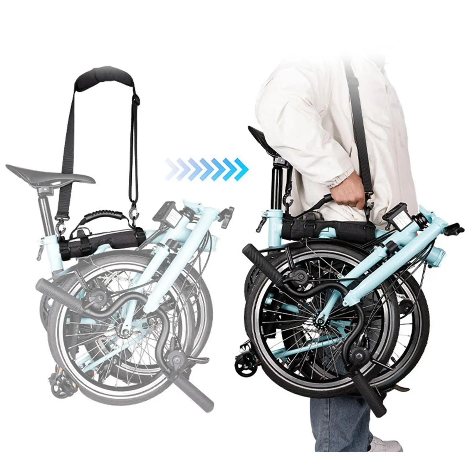 Transform your daily commuting experience with this practical, durable, and ergonomic folding bike carry strap. Enjoy the convenience of quick setup, secure attachment, and comfortable transport, making every trip smoother and more enjoyable. Don't miss out—simplify your cycling routine now!