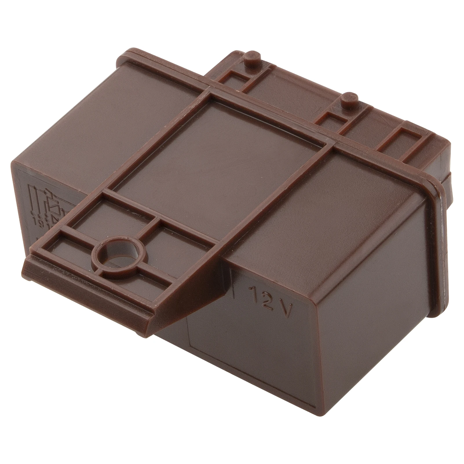 - This robust relay features a compact rectangular shape with a matte brown plastic housing for improved durability and resistance to wear and environmental factors.