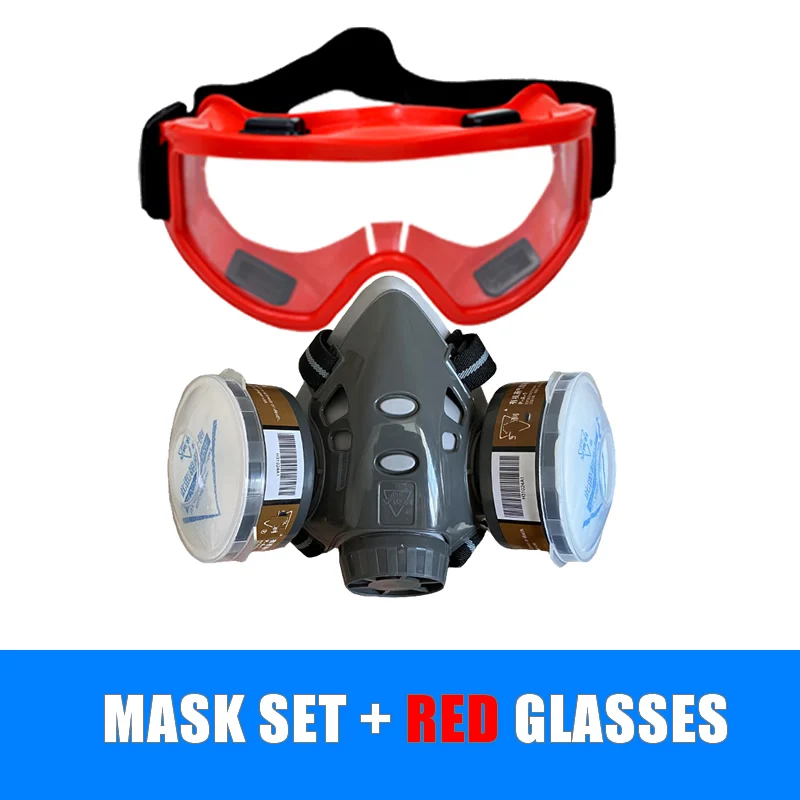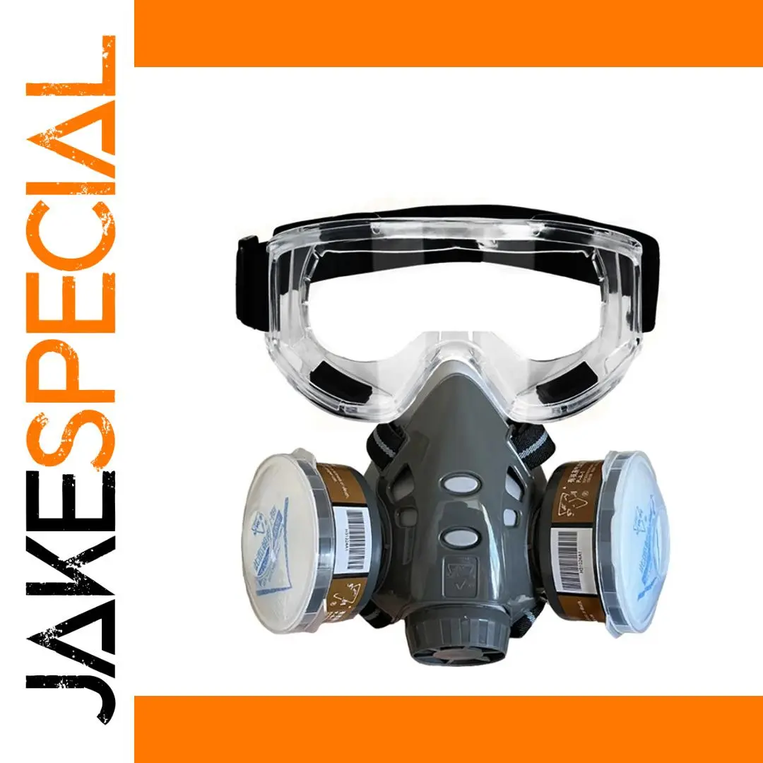 This rugged half-face gas mask features dual filtering cartridges compatible with standard filter boxes like 3M 6001, providing reliable protection against organic vapors such as benzene, gasoline, acetone, and carbon disulfide. Made from durable, flexible material, it maintains its shape and comfort after extrusion. The high-quality impact-resistant safety goggles with anti-fog, anti-scratch, and splash-proof coatings offer wide-vision protection. An adjustable 2-point head belt ensures a secure fit, while a high-tech double-sealing breathing valve enhances airflow and sealability. Suitable for temperatures from -30°C to 45°C, it includes the mask, goggles, and two color options of filtering boxes—yellow, red, black, blue, or clear glasses—delivering essential safety for industrial and chemical environments.