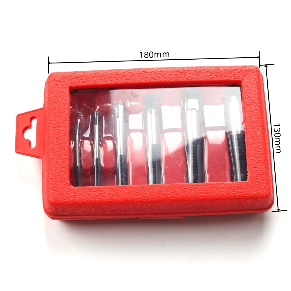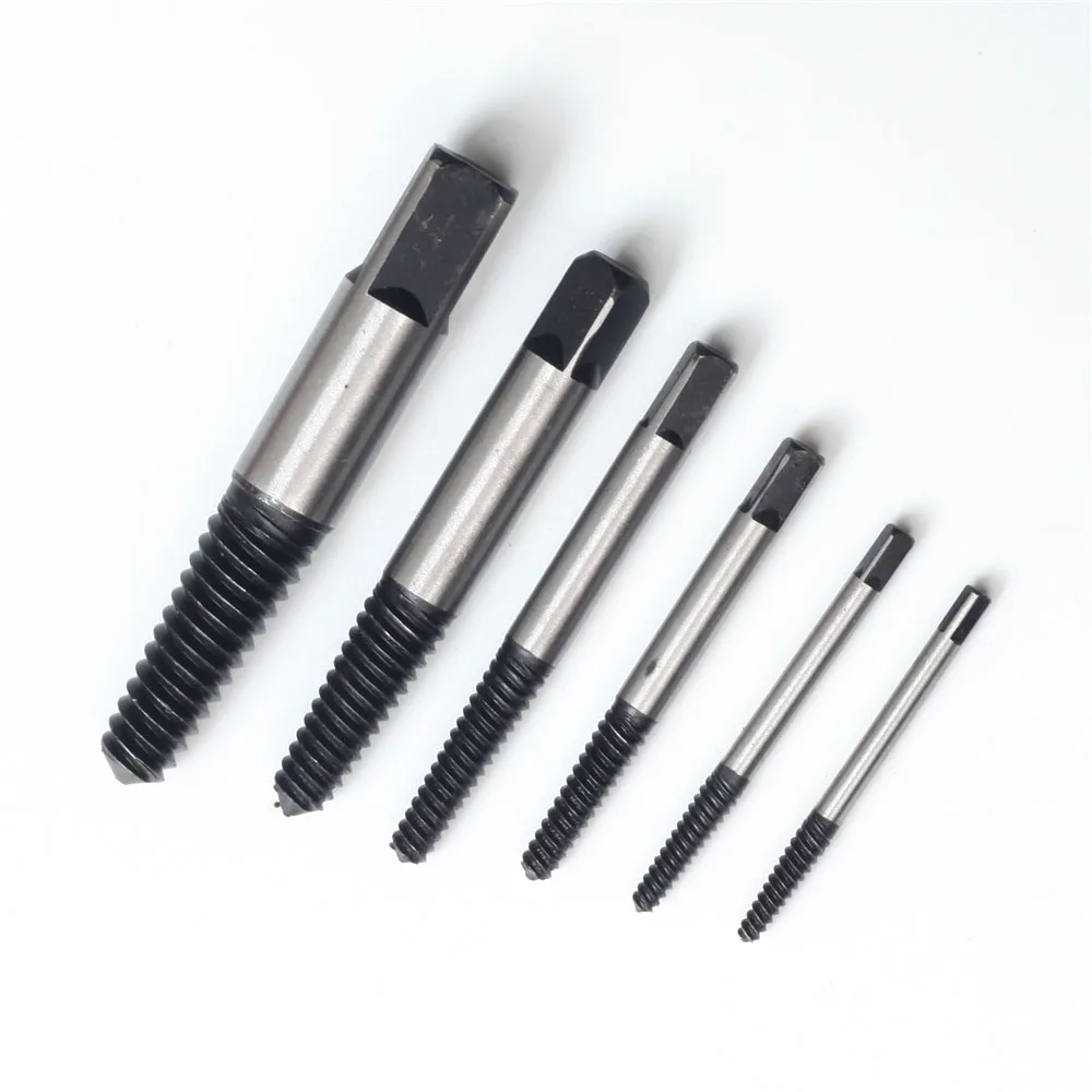 This set of broken bolt extractors is crafted from high carbon steel, featuring sizes of 5, 6, and 8 pieces to handle a variety of applications on wood and metal surfaces. Designed to efficiently remove damaged, rusted, or broken screws and bolts, including water pipes, these extractors have a fine-toothed thread pattern for superior grip and ease of use. Compatible with flat, hexagonal, or coated screw types, the durable extractors are suitable for home, office, and maintenance tasks, and can be used with wrenches or twisting tools. Packaged in compact, sturdy boxes, each set provides reliable performance for disassembling stubborn fasteners.